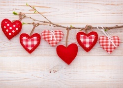 Edytor tapety: Materiałowe serduszka zawieszone na gałązce