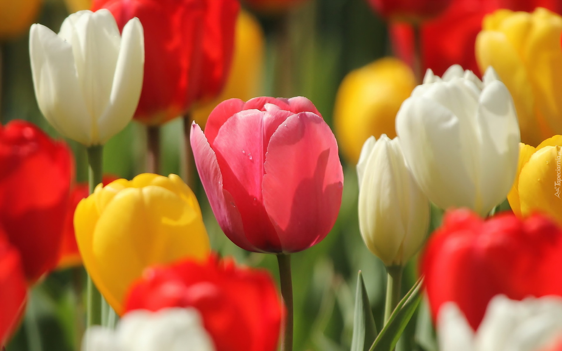 Edytor tapety: Kolorowe tulipany w słońcu