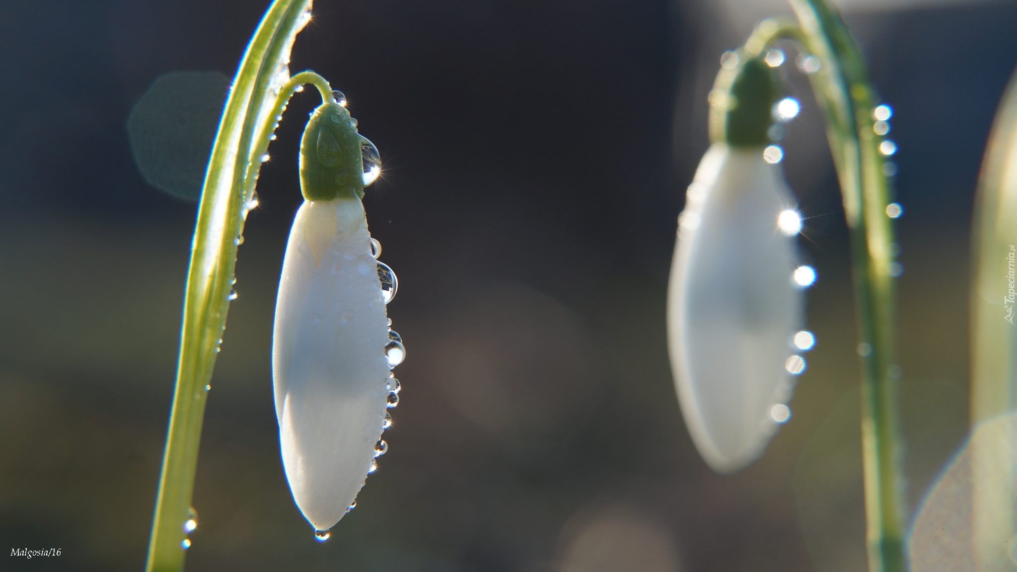 Edytor tapety: Krople wody na pąkach przebiśniegów