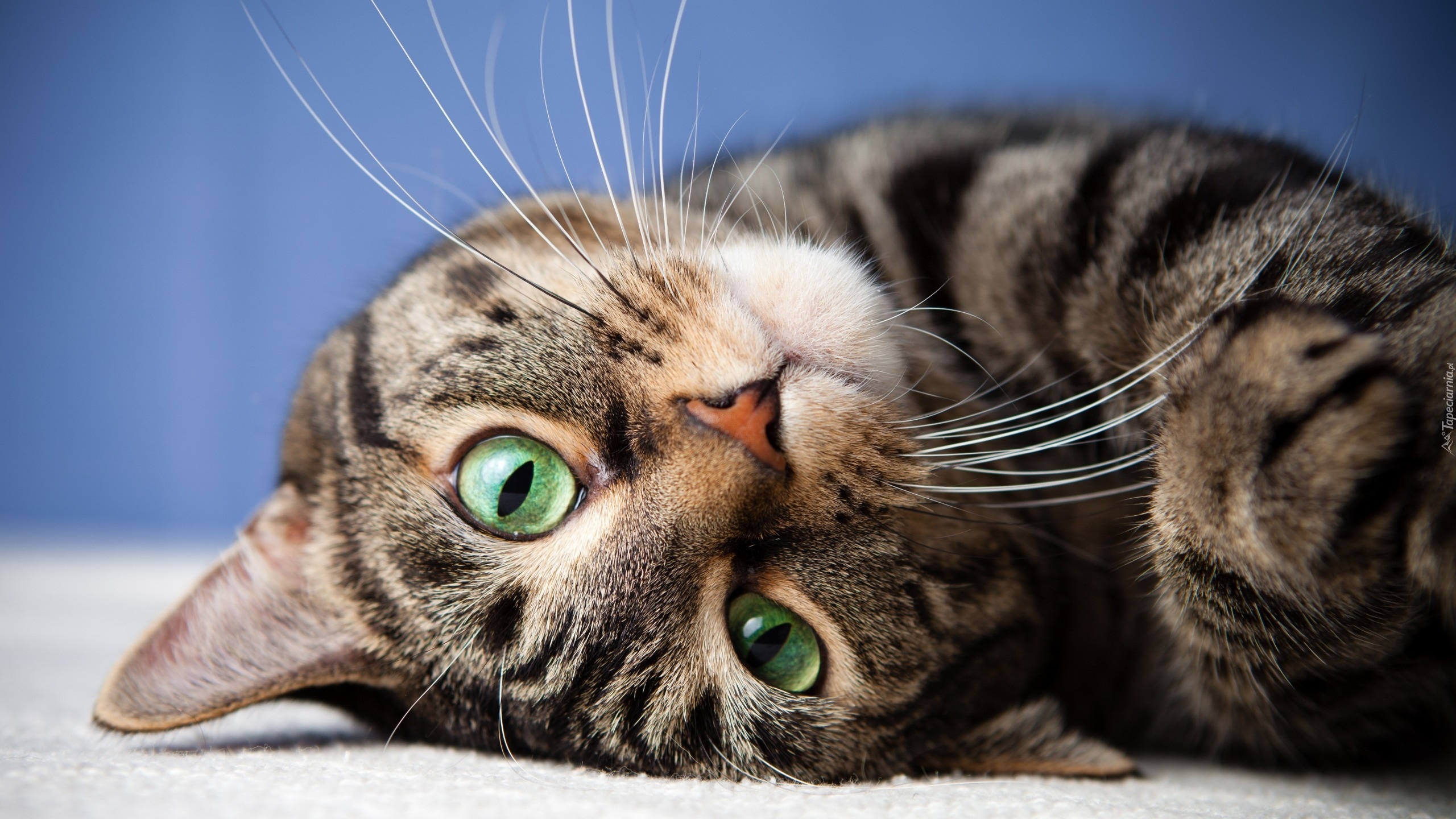 Edytor tapety: Bury zielonooki kotek w zabawnej pozycji