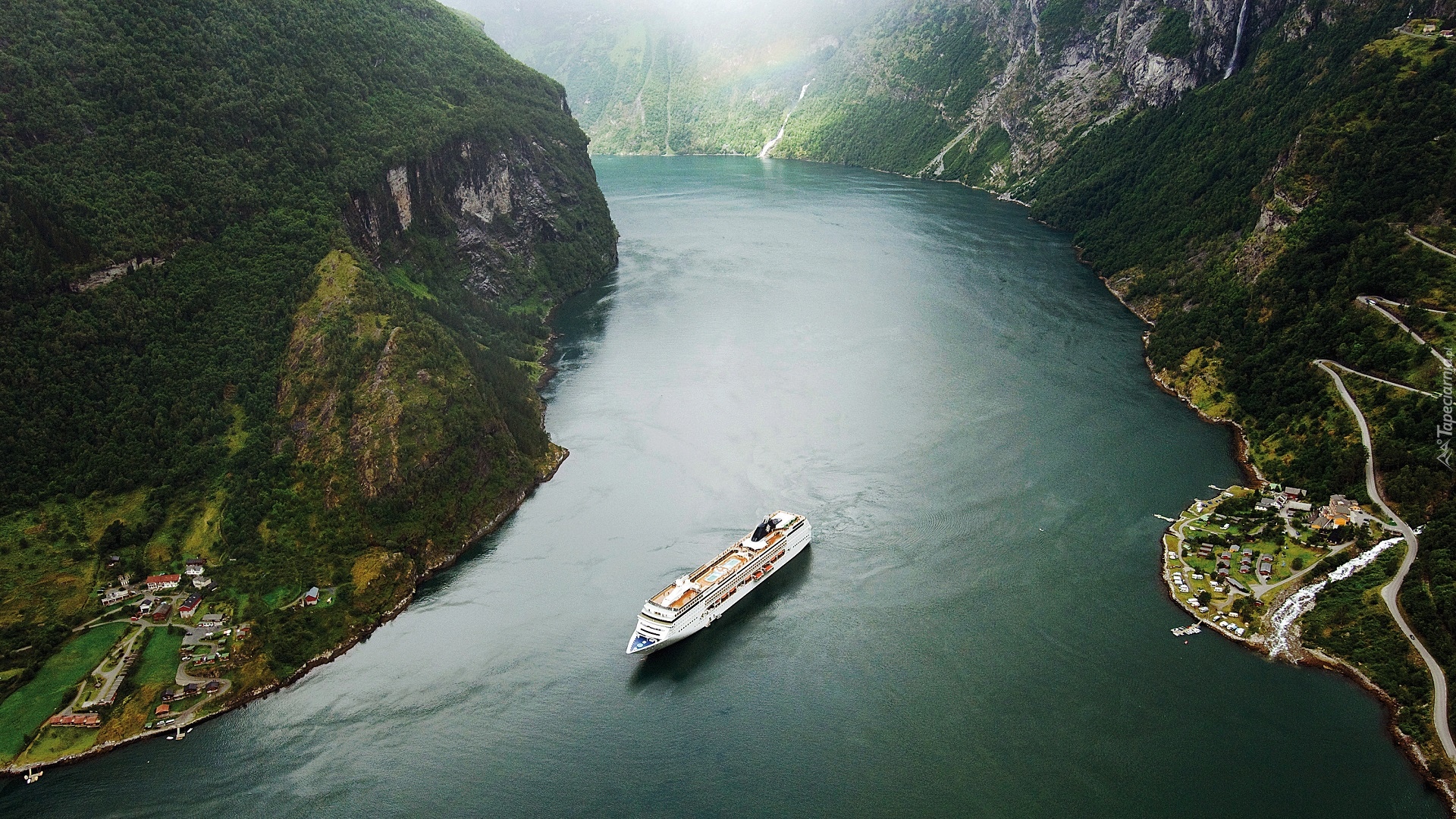 Edytor tapety: Statek płynący fiordem Geirangerfjord w Norwegii