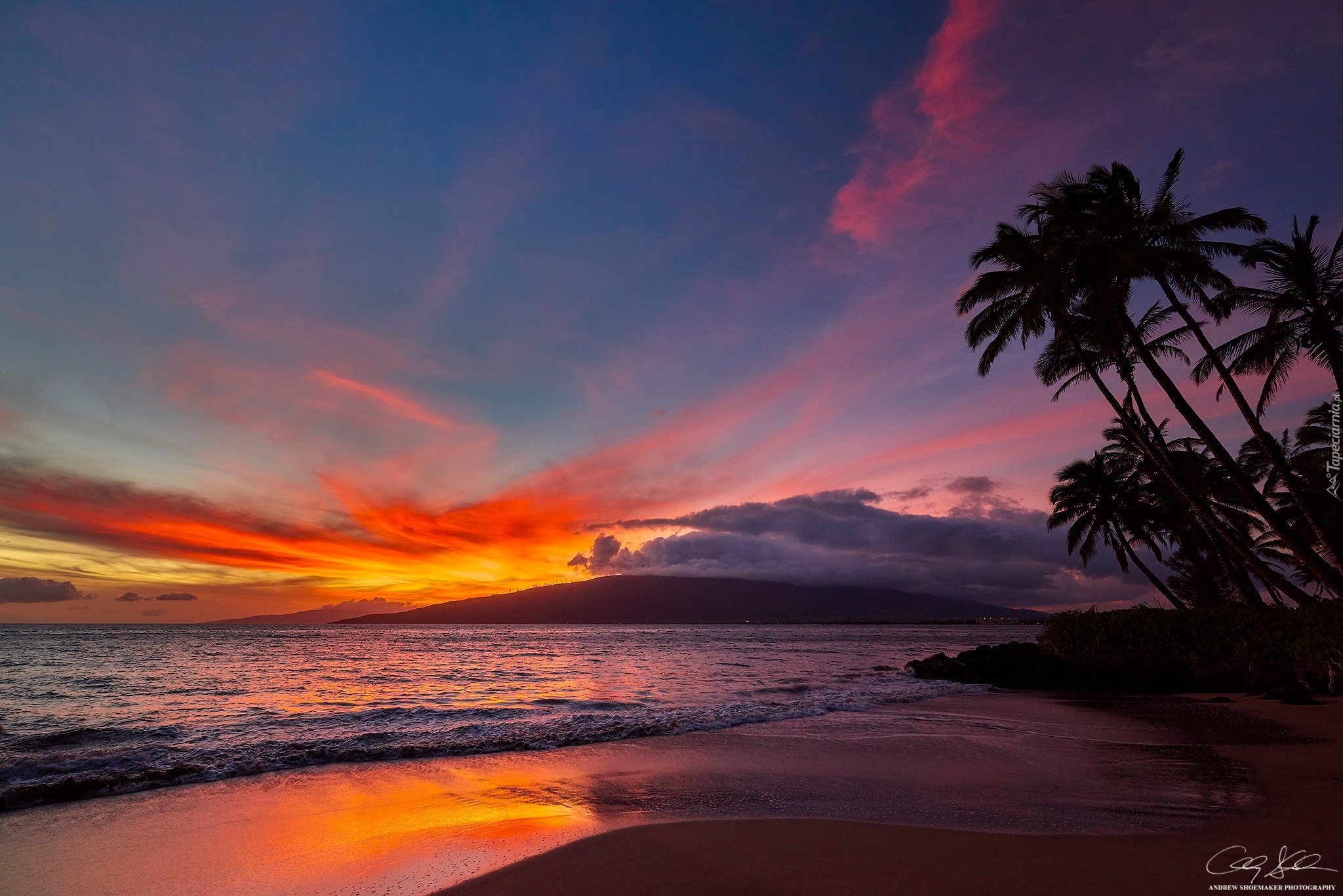 Edytor tapety: Palmy w zachodzącym słońcu na wybrzeżu Maui