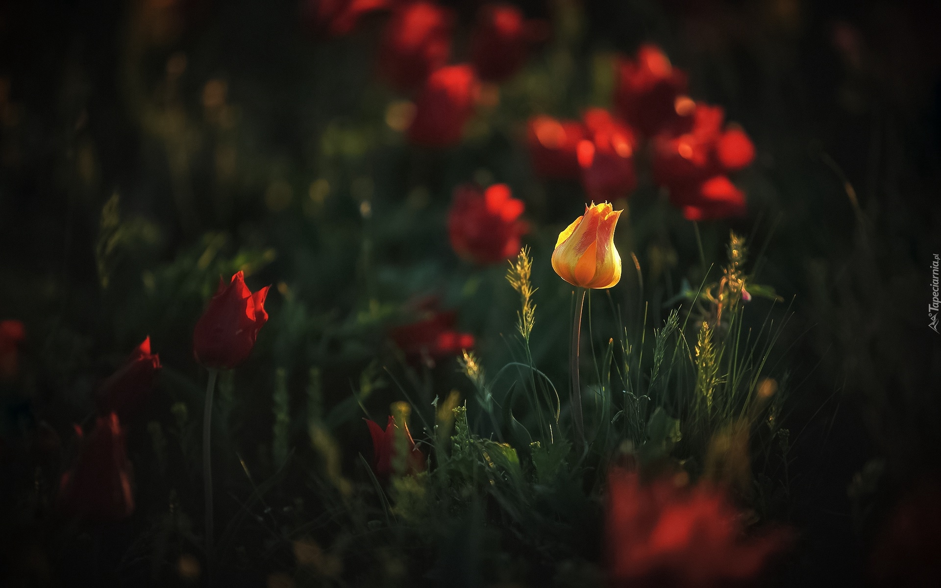 Edytor tapety: Tulipany zakwitły na łące