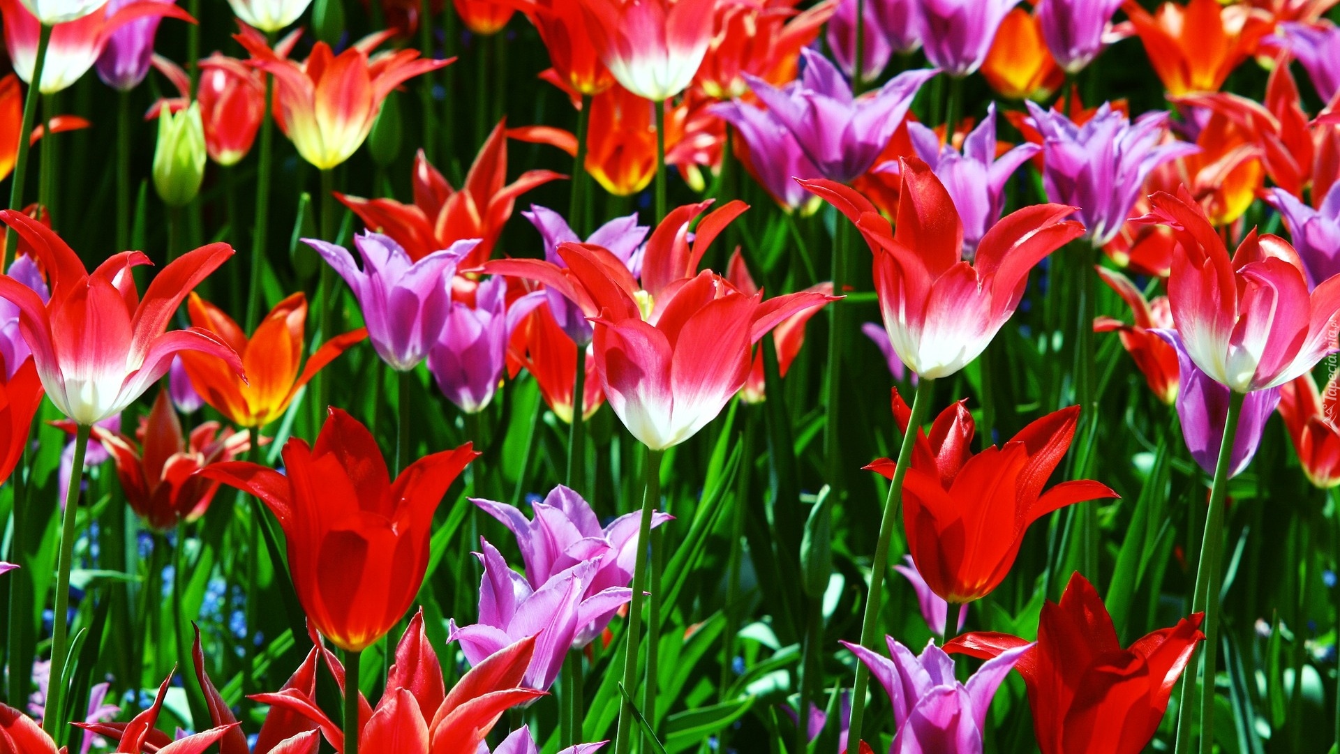 Edytor tapety: Rozwinięte tulipany w słońcu