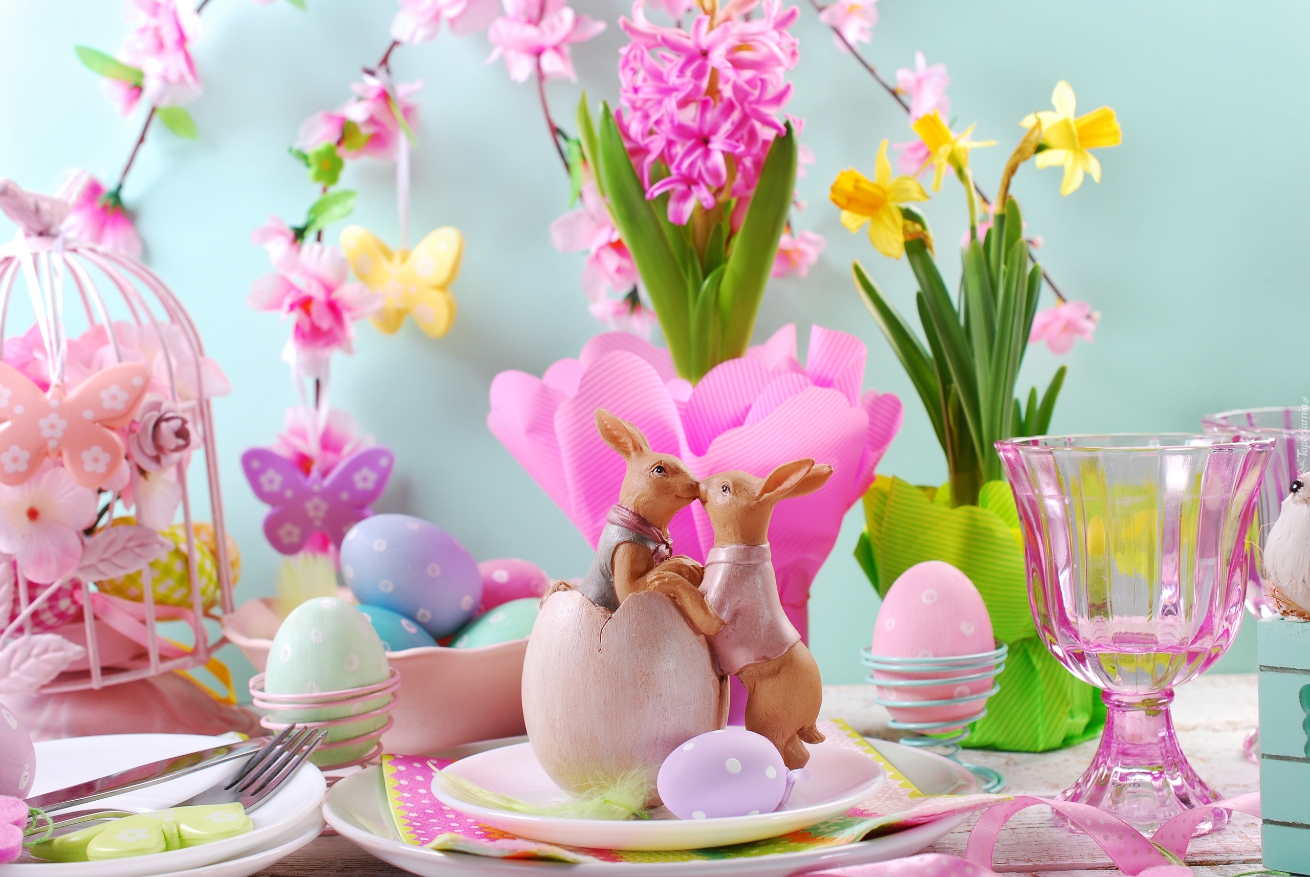 Edytor tapety: Wielkanocna dekoracja z kwiatami, pisankami i zajączkami