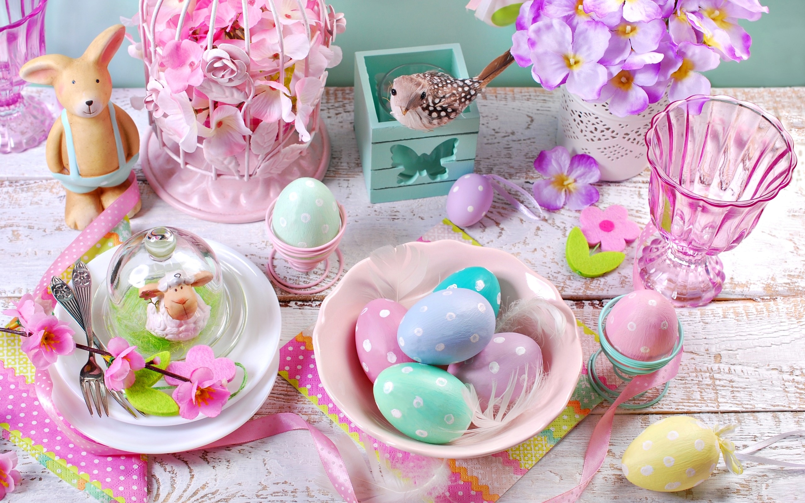 Edytor tapety: Wielkanocnie nakryty stół z pisankami