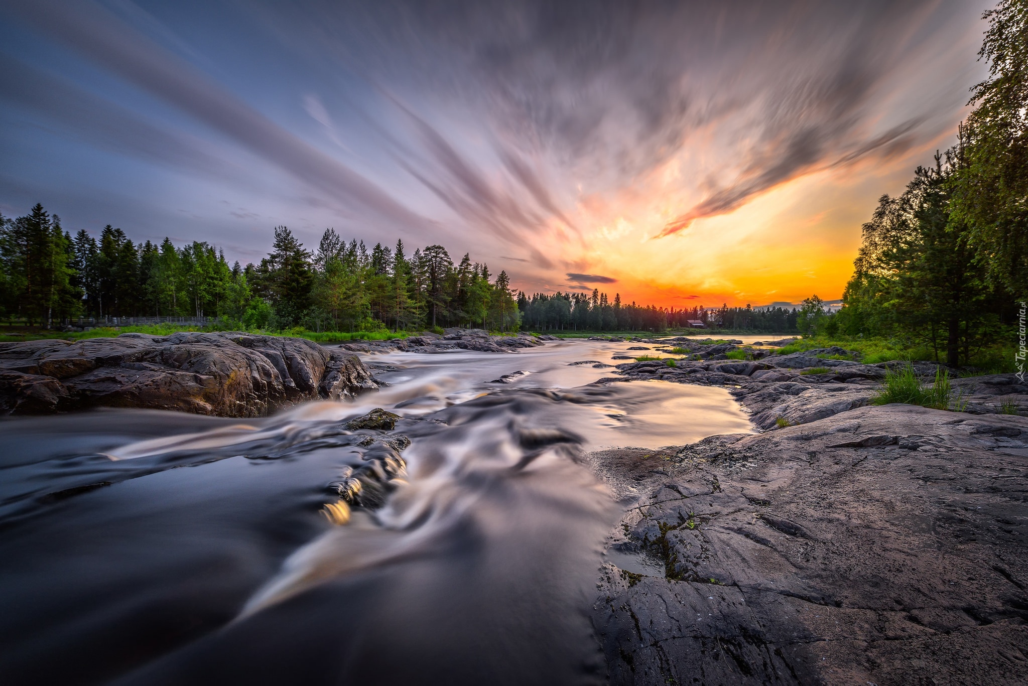 Edytor tapety: Zachód słońca nad rzeką Kiiminkijoki w Finlandii