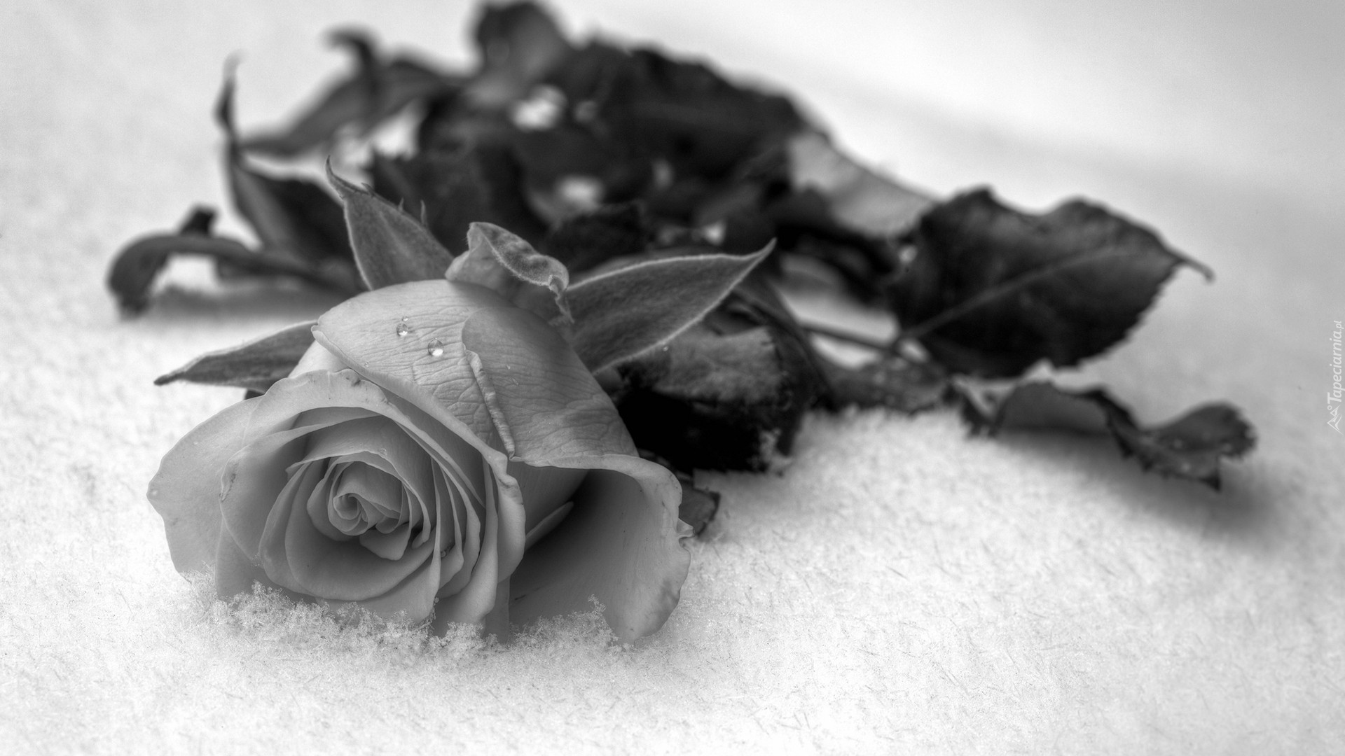 Edytor tapety: Czarno-białe zdjęcie róży na śniegu