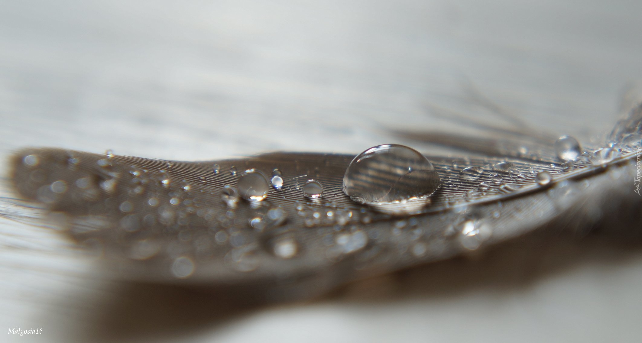 Edytor tapety: Kropelki wody na piórku