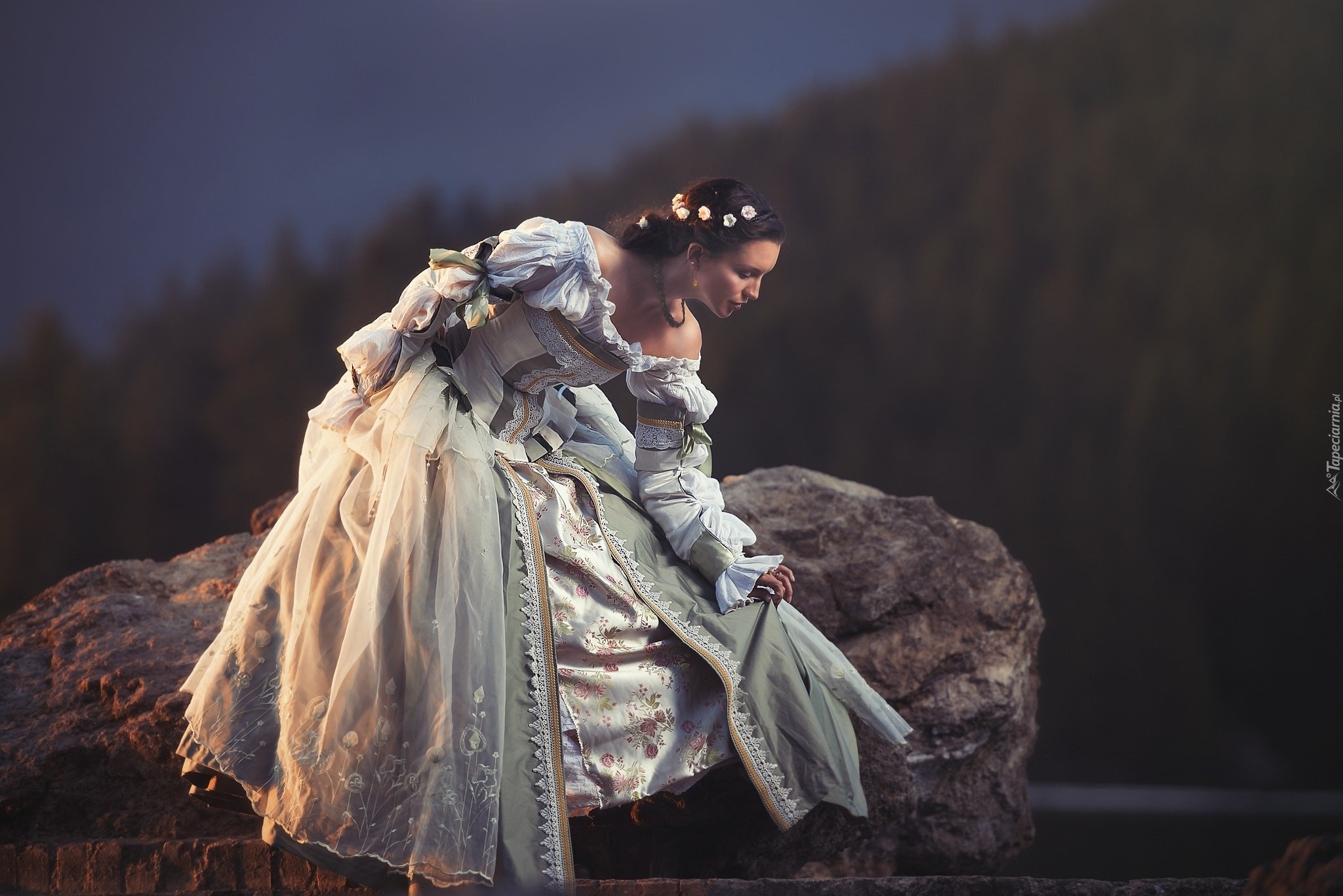 Edytor tapety: Pochylona kobieta w długiej sukni