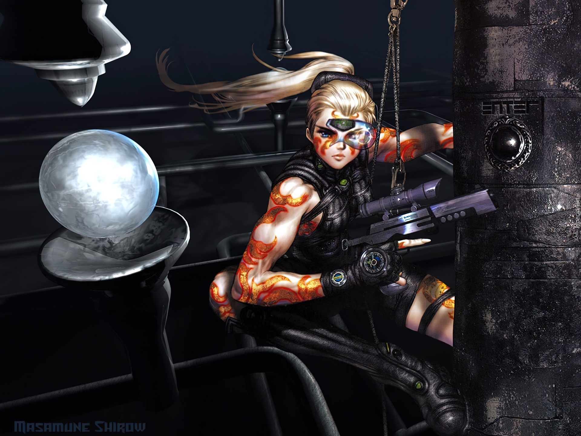 Edytor tapety: Masamune Shirow, kobieta, pistolet
