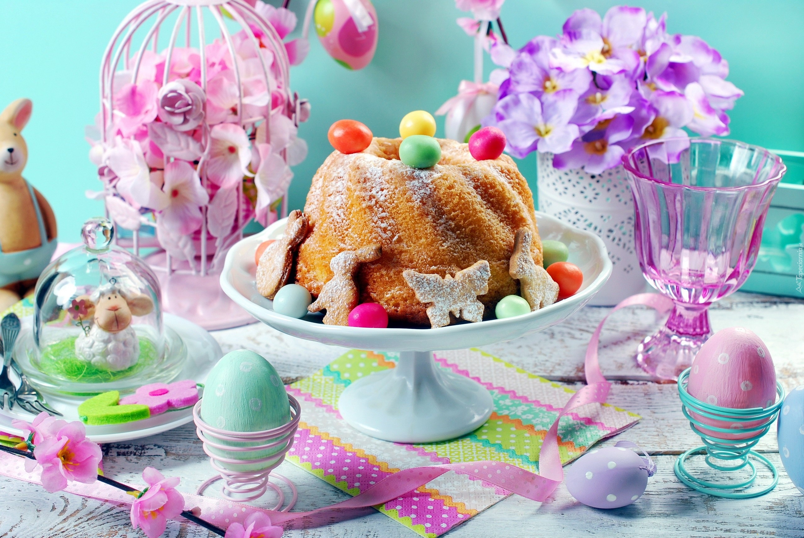 Edytor tapety: Wielkanocny stół z babką i pisankami