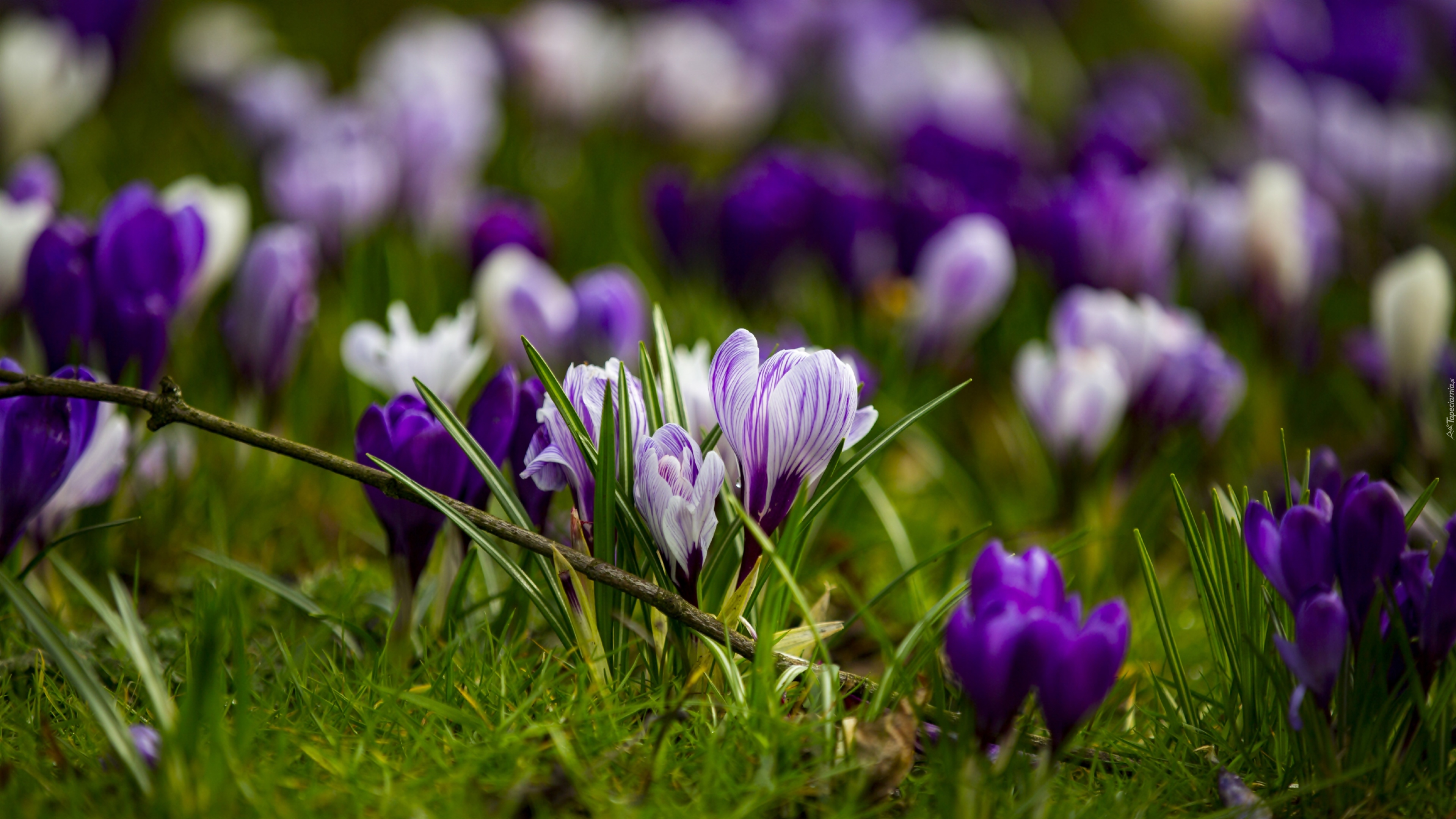 Edytor tapety: Wiosenne krokusy ozdabiają łąkę