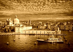 Edytor tapety: Wenecki kanał z zacumowanym statkiem i widokiem na Bazylikę św. Marka