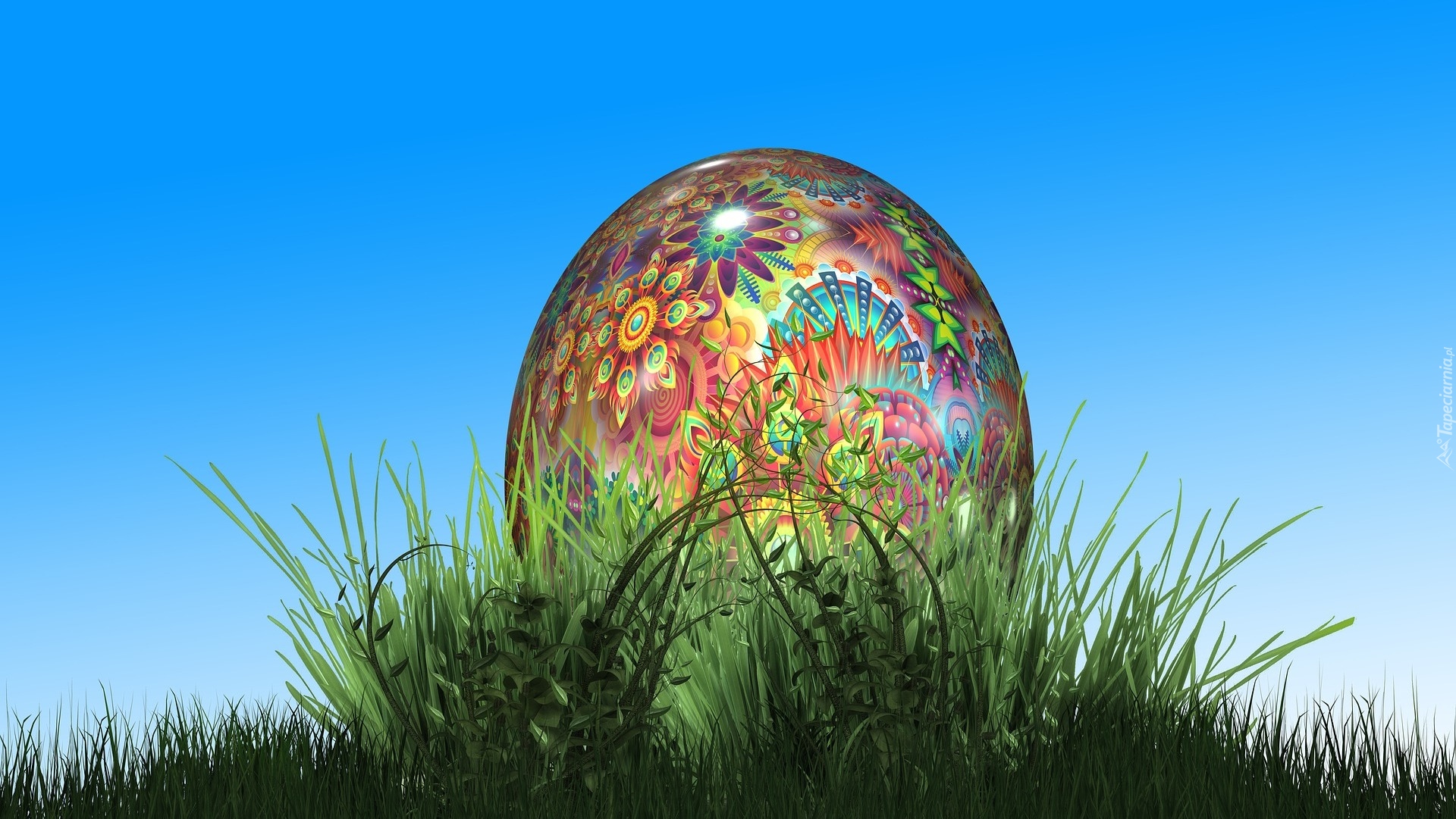 Edytor tapety: Graficzna wielkanocna pisanka w trawie w 2D