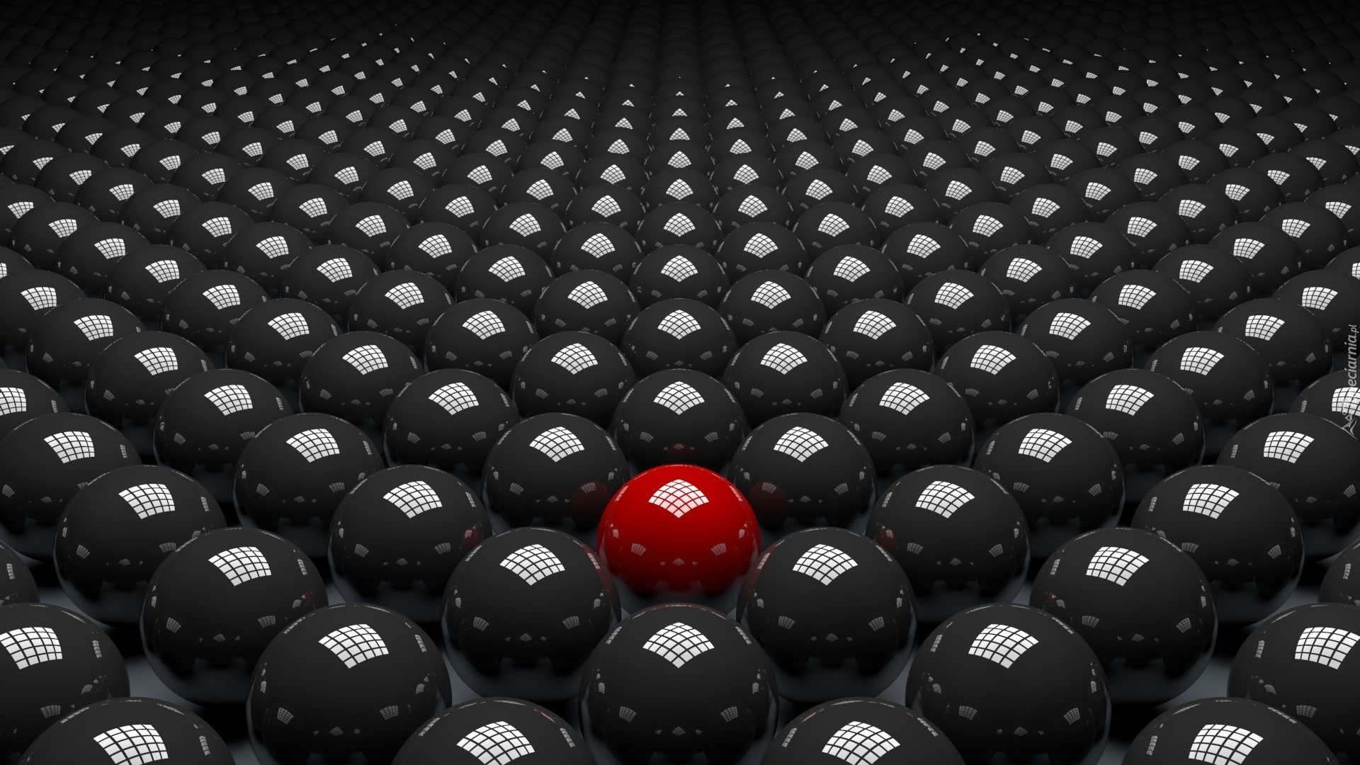 Edytor tapety: Czerwona kula pośród czarnych w grafice 3D