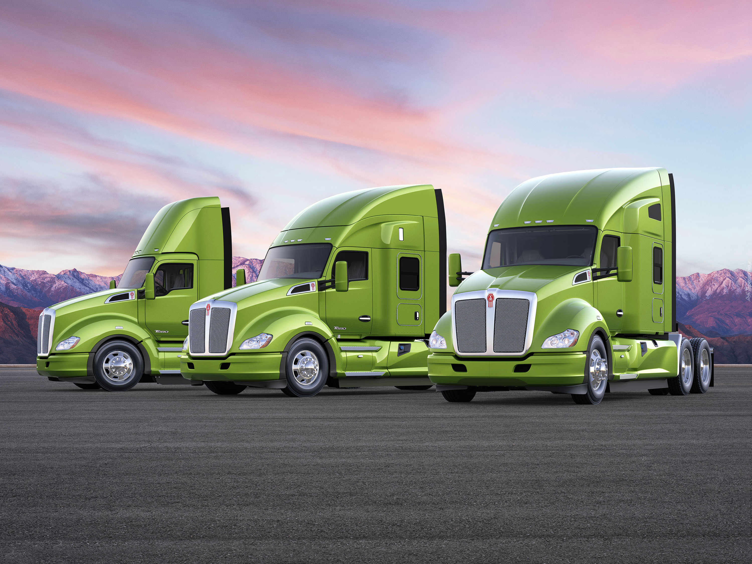 Edytor tapety: Trzy zielone ciężarówki Kenworth T680