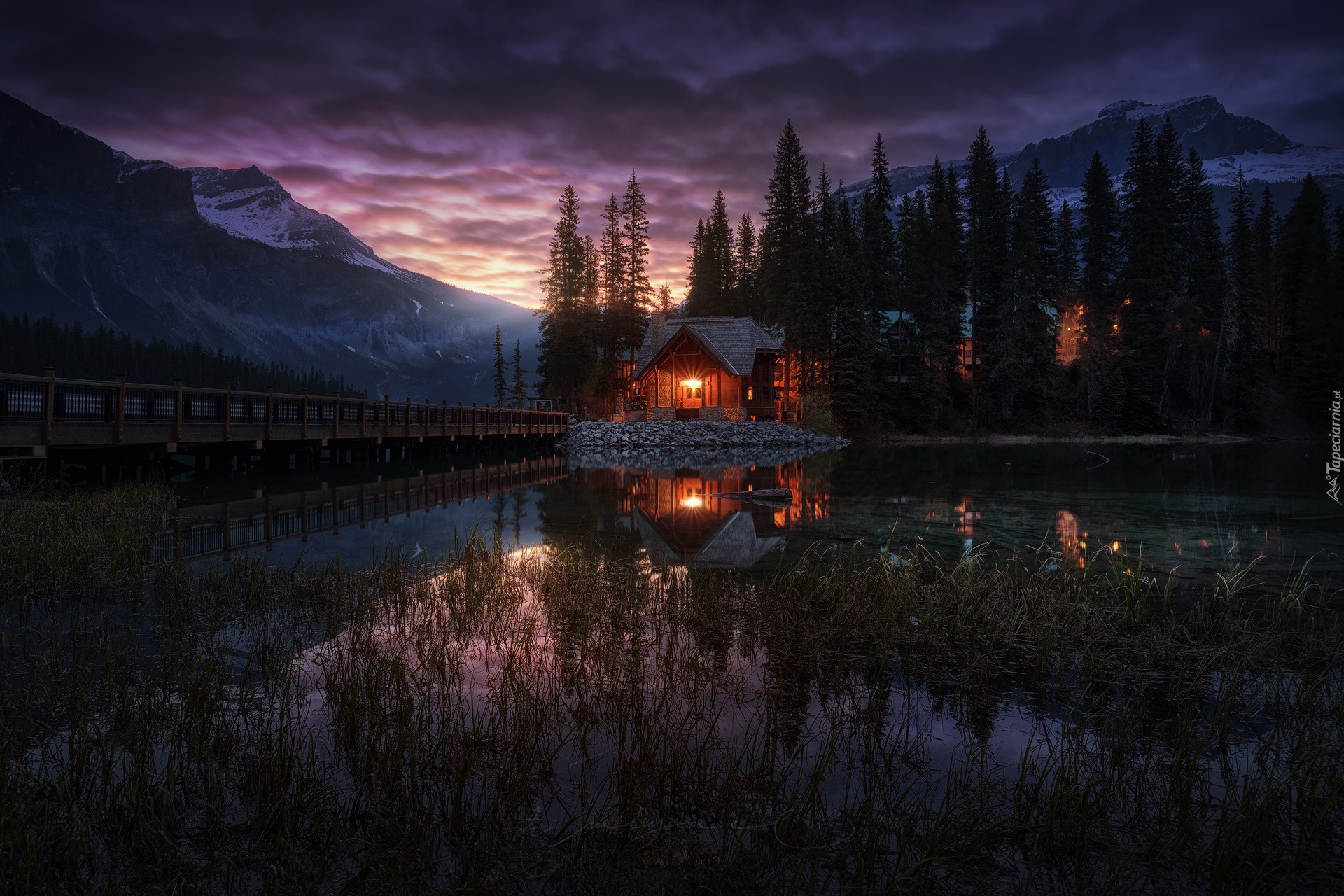 Edytor tapety: Oświetlony dom w Parku Narodowym Yoho w Kanadzie