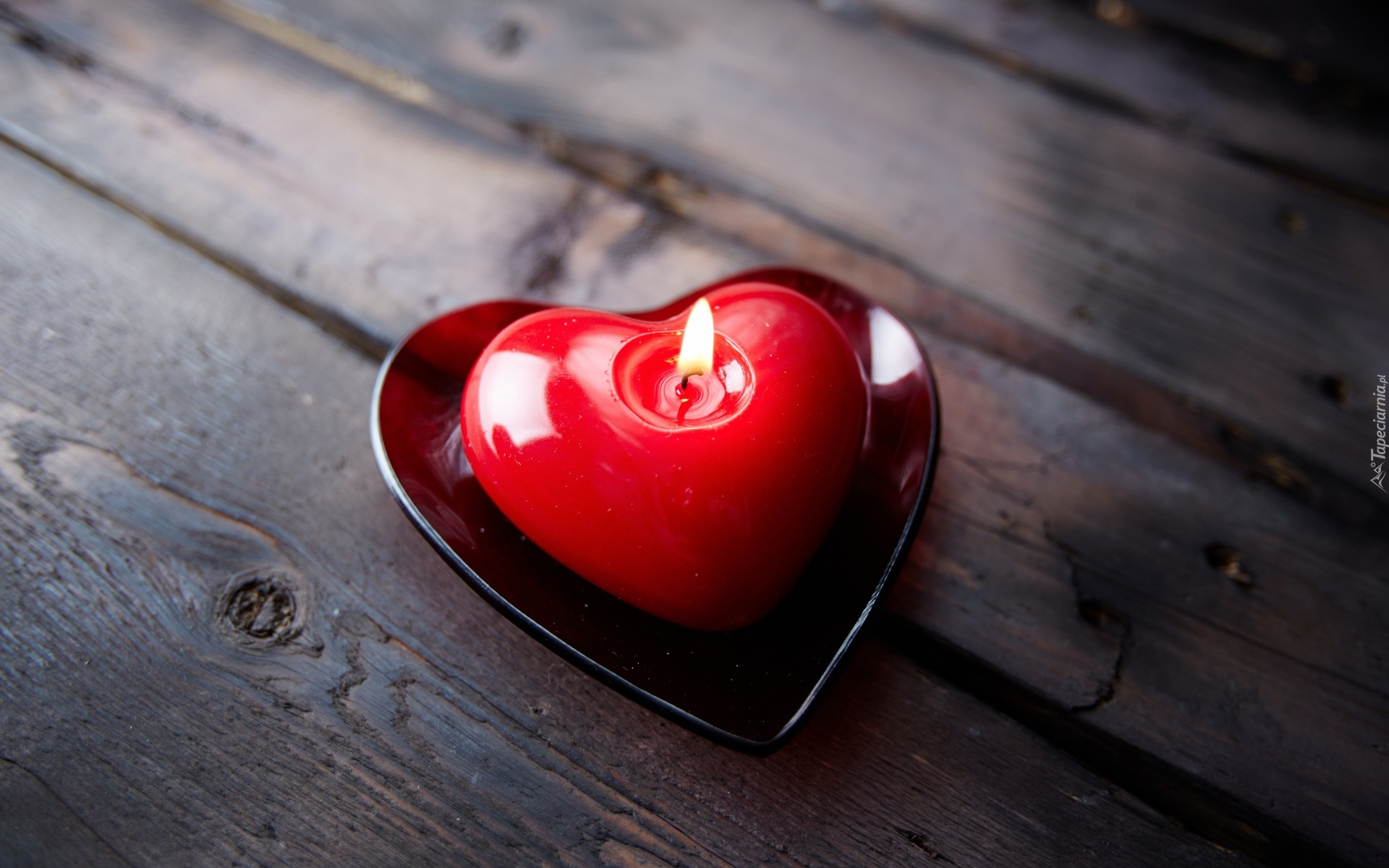 Edytor tapety: Płonąca czerwona świeczka w kształcie serca