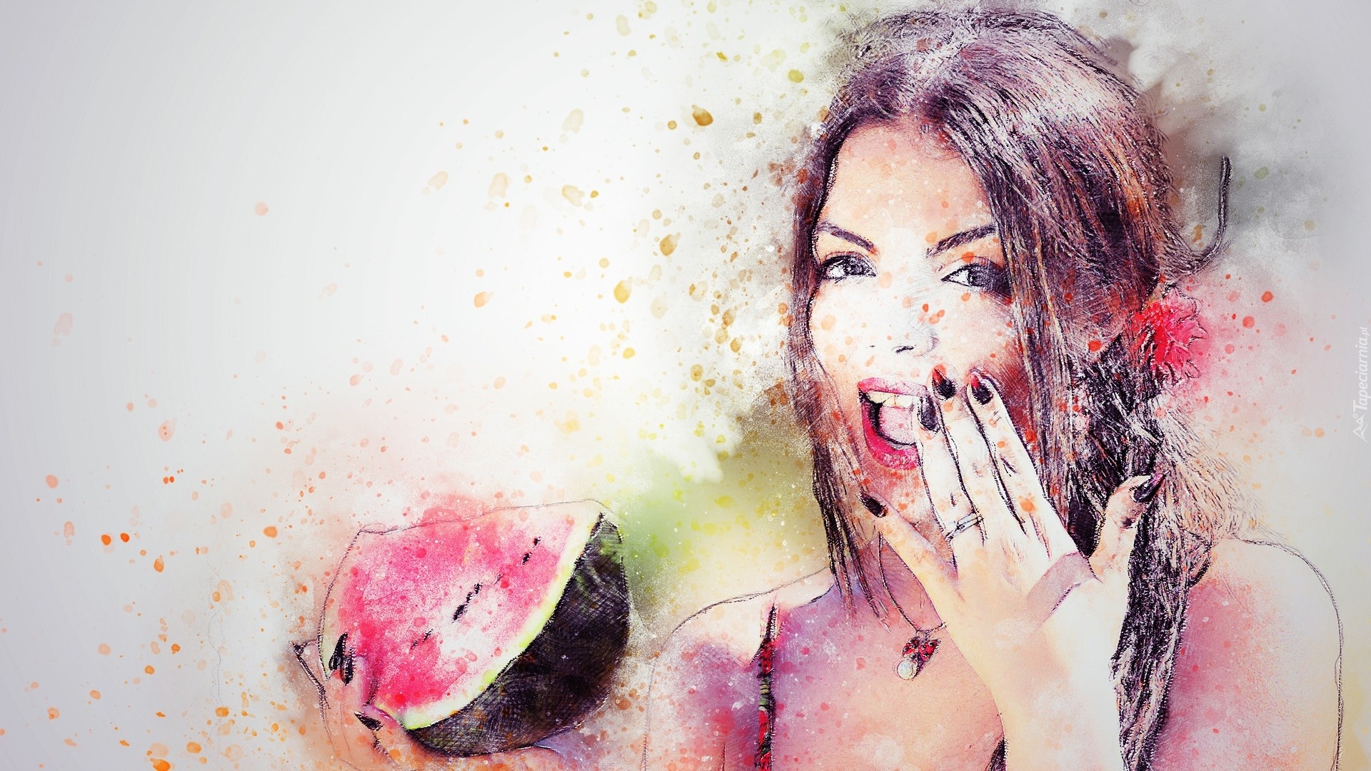 Edytor tapety: Uśmiechnięta kobieta z arbuzem