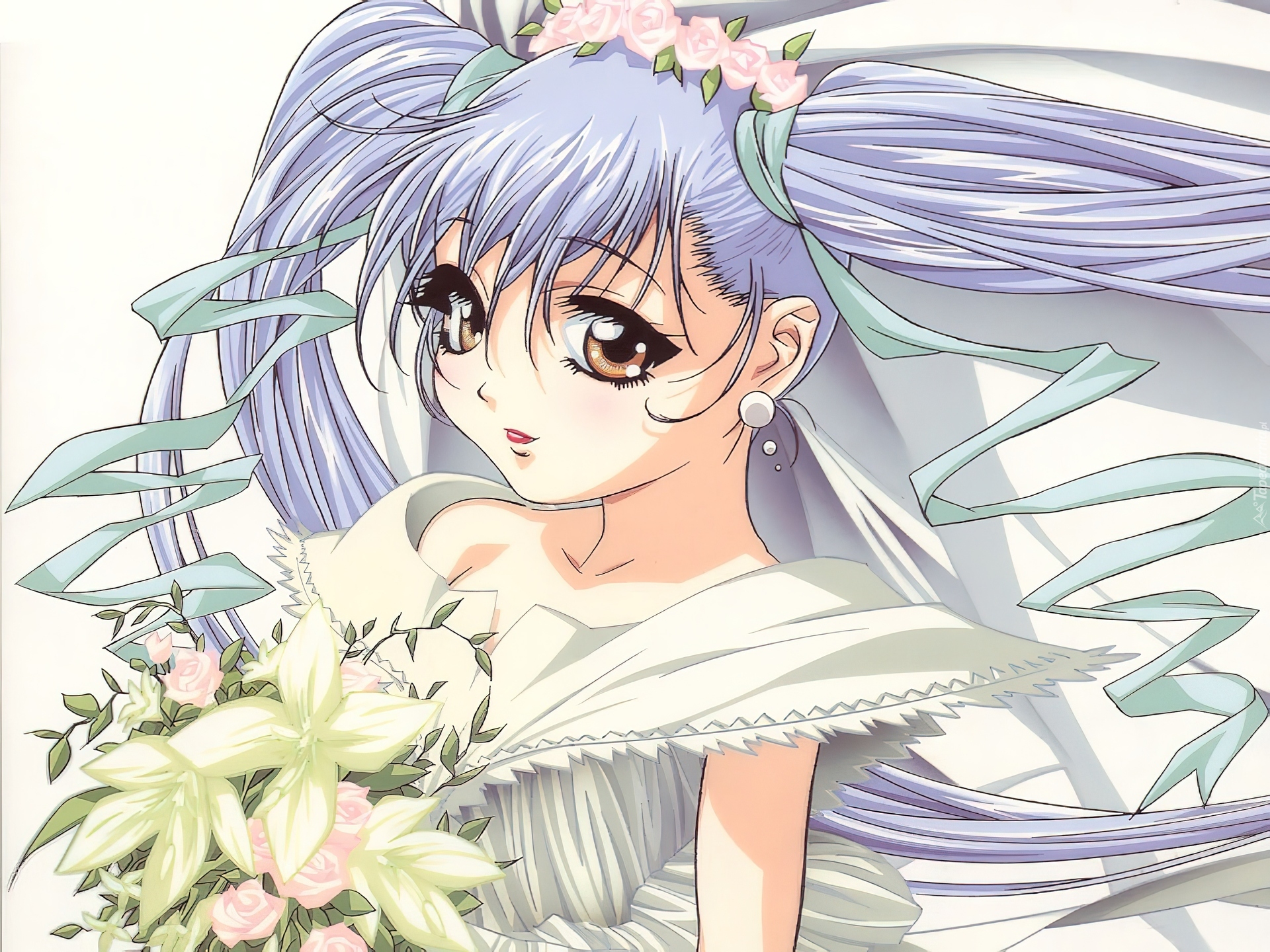 Edytor tapety: bukiet, kwiaty, kobieta, Martian Successor Nadesico
