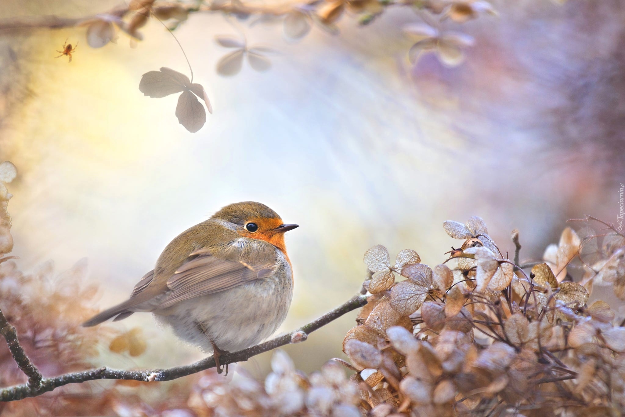 Edytor tapety: Rudzik na gałązce obok suchych roślinek