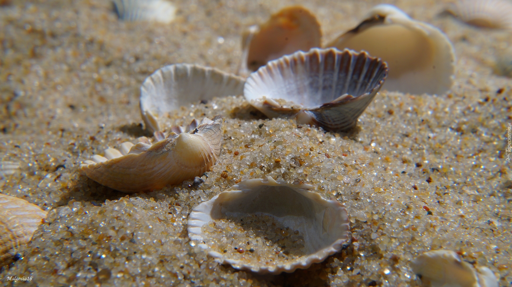 Edytor tapety: Zbliżenie muszelek w piasku