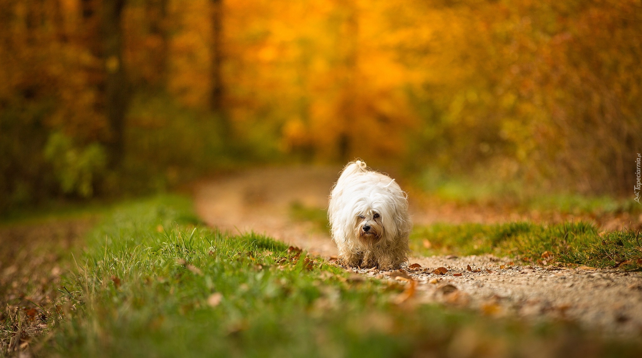 Edytor tapety: Pies rasy hawańczyk na leśnej ścieżce