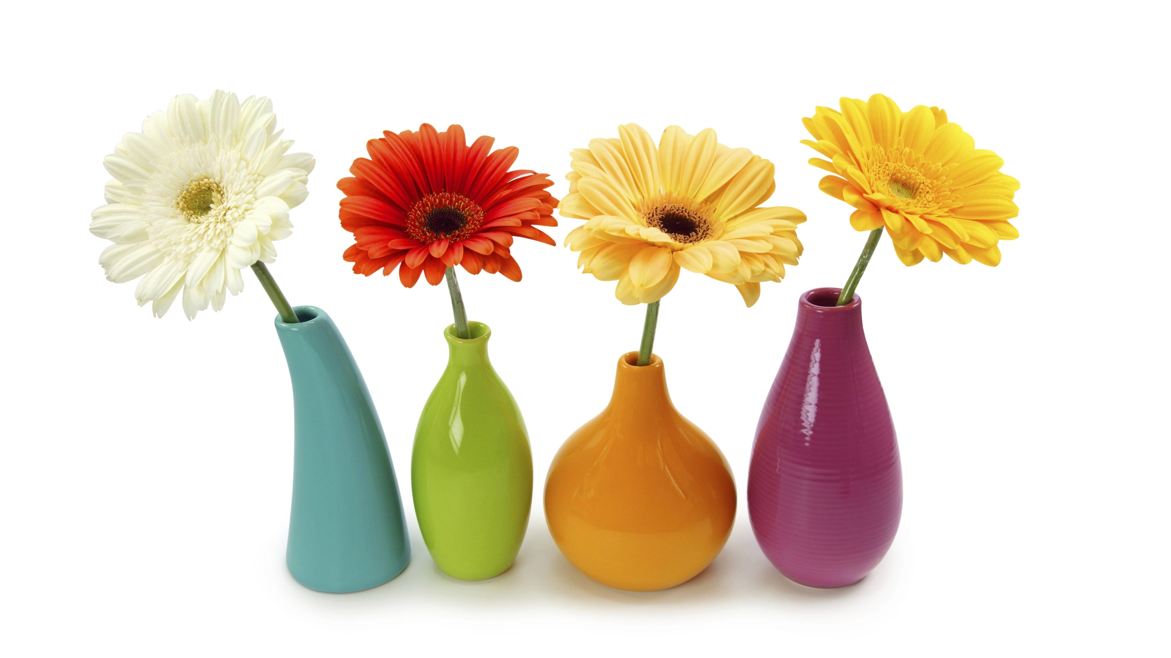 Edytor tapety: Kolorowe gerbery w wazonikach
