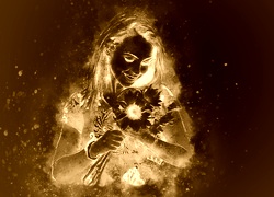 Edytor tapety: Uśmiechnięta dziewczyna ze słonecznikami w dłoniach