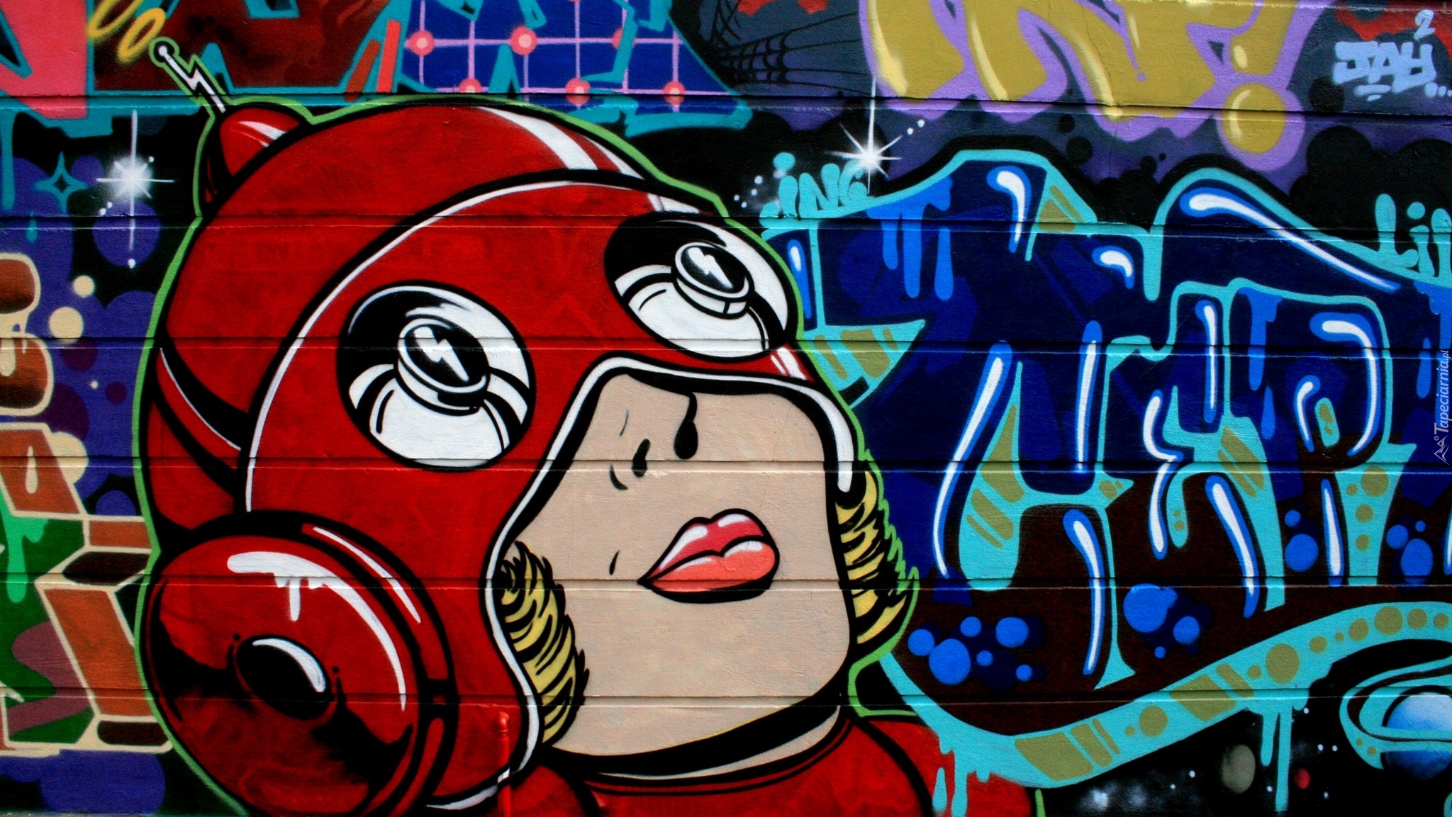 Edytor tapety: Kobieta w graffiti na murze