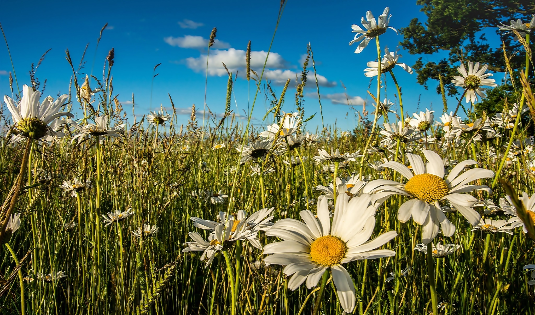 Edytor tapety: Rumiankowa łąka w letnim słońcu