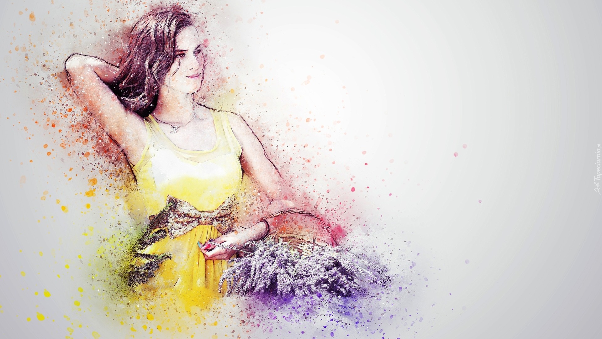 Edytor tapety: Kobieta w letniej sukience z koszem lawendy