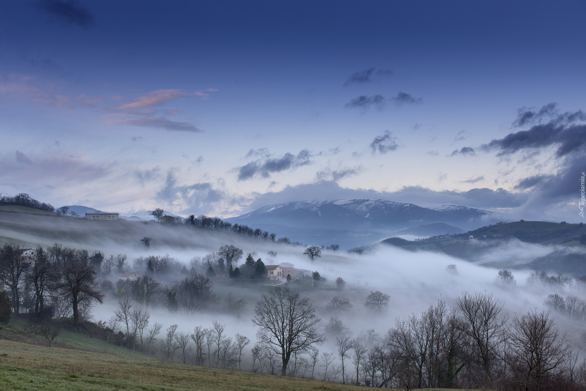Edytor tapety: Mgła otula domy we włoskich górach Sibillini
