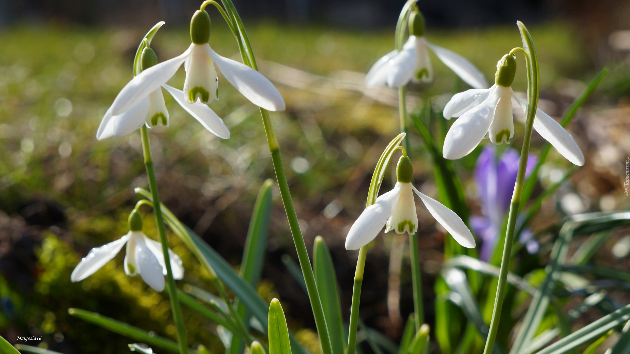 Edytor tapety: Kwitnące przebiśniegi na rozmytym tle