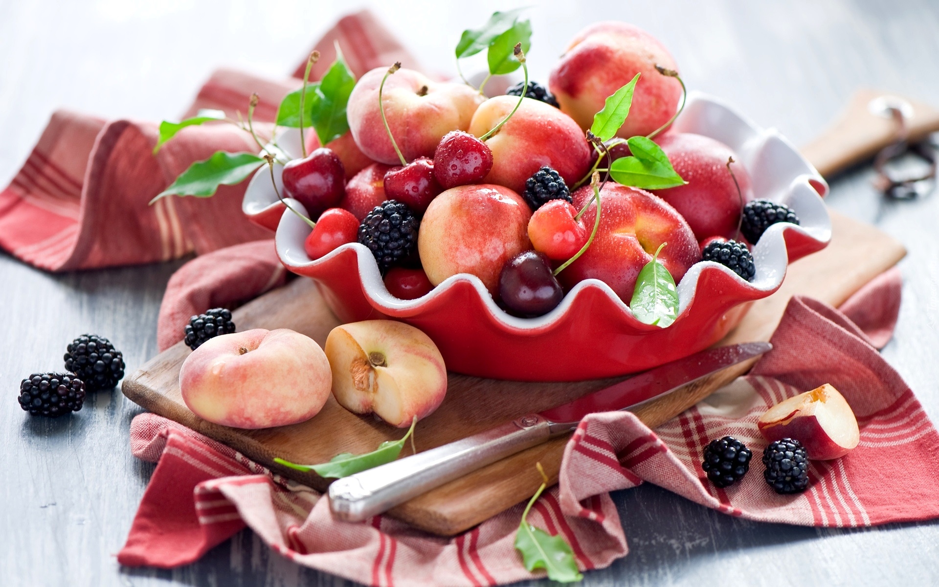 Edytor tapety: Brzoskwinie pen tao, wiśnie i jeżyny