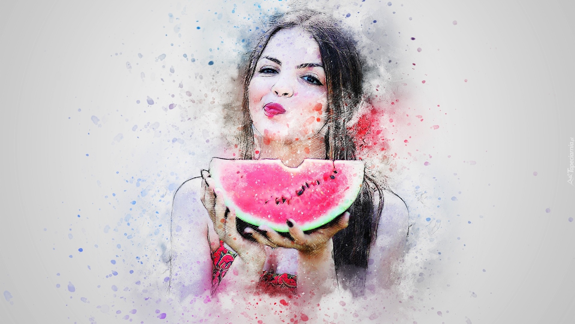 Edytor tapety: Kobieta z arbuzem