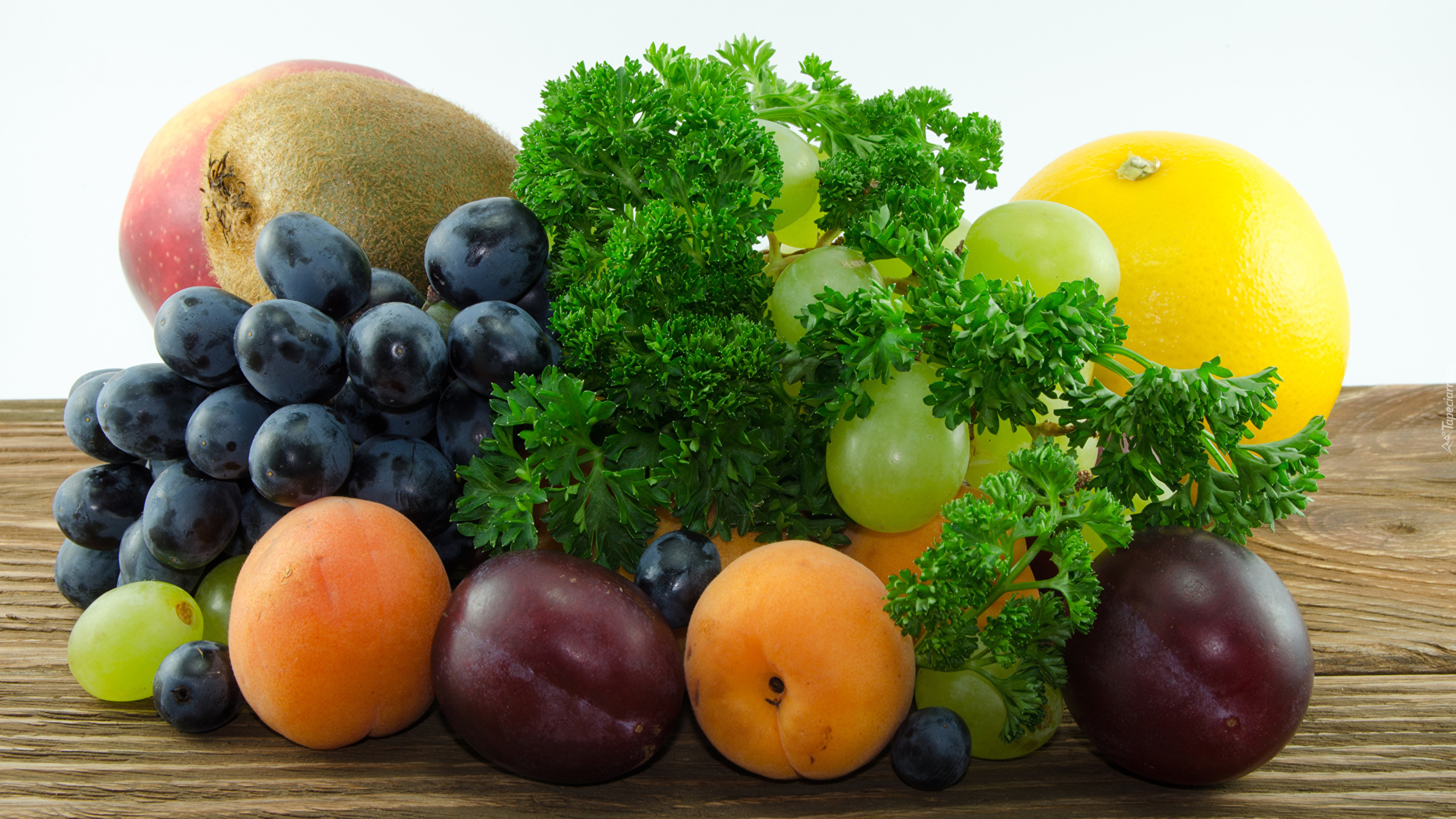 Edytor tapety: Różnorodne owoce z pietruszką naciową