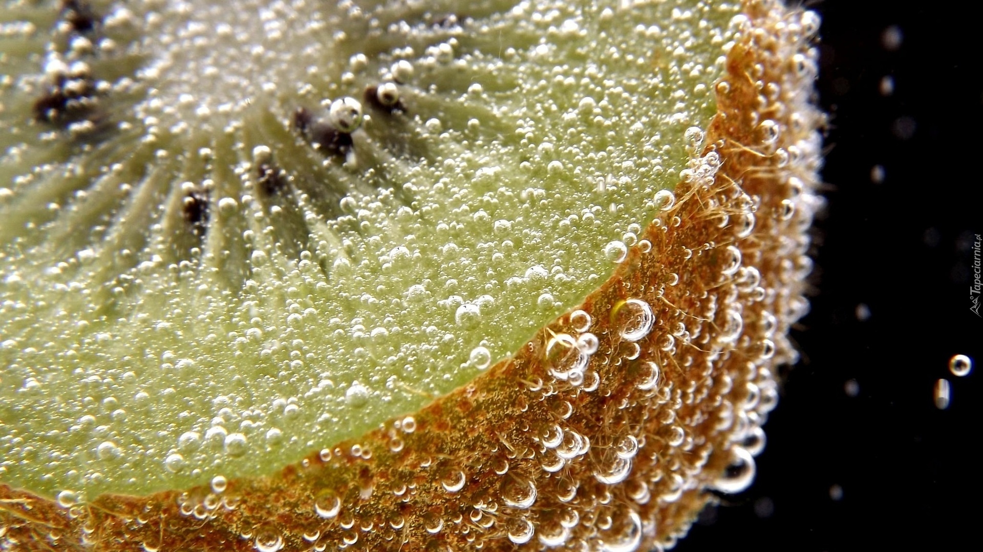 Edytor tapety: Krople wody na rozkrojonym owocu kiwi