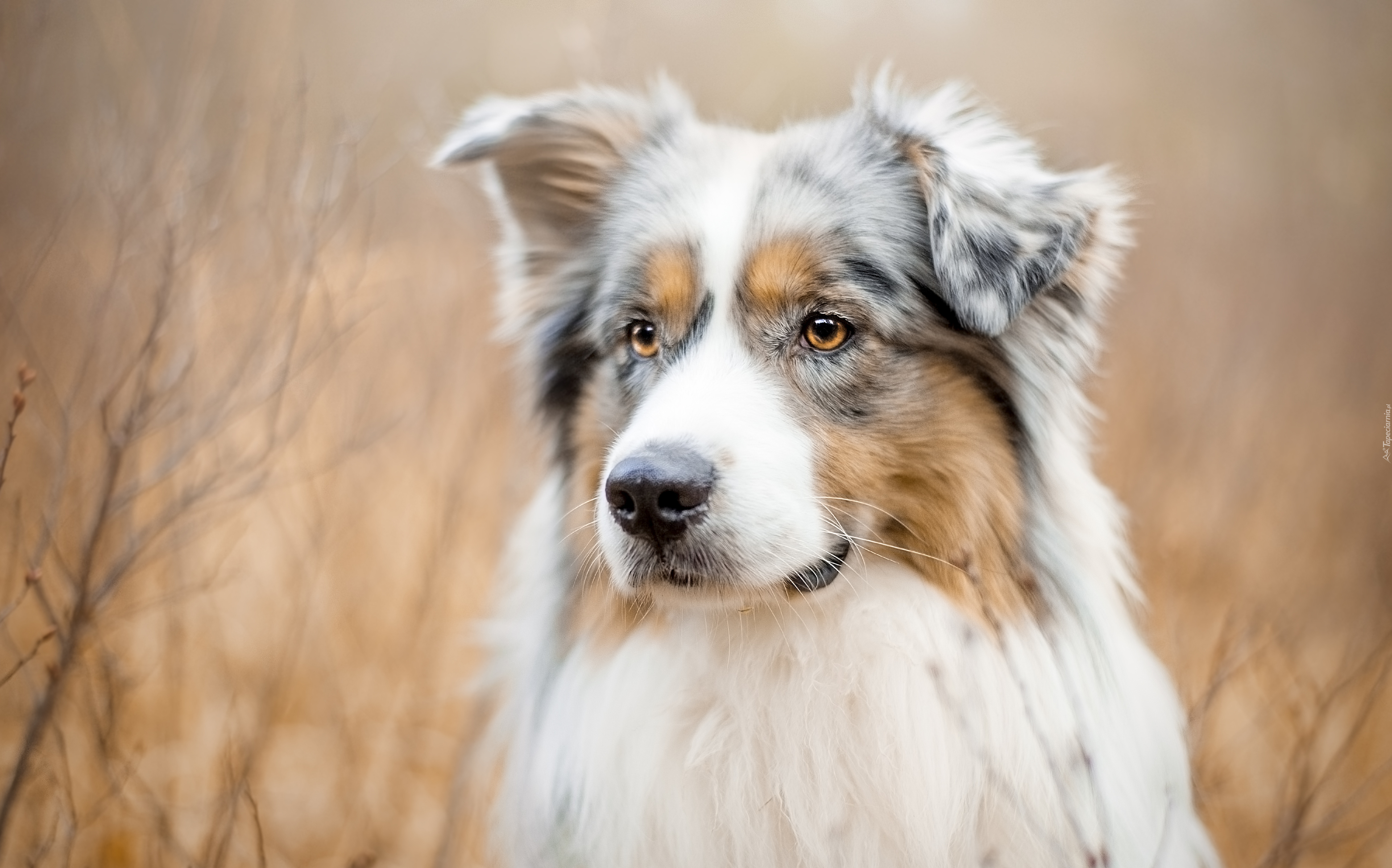 Edytor tapety: Portret owczarka australijskiego na rozmytym tle