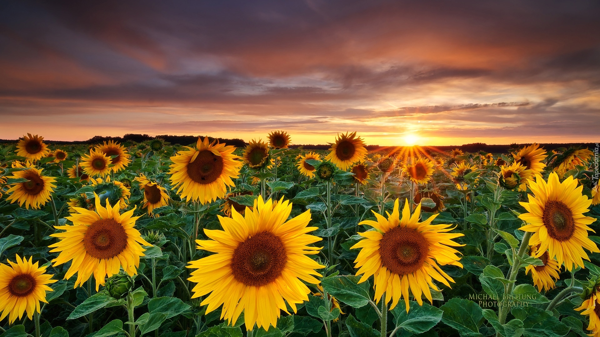 Edytor tapety: Plantacja słoneczników w zachodzącym słońcu