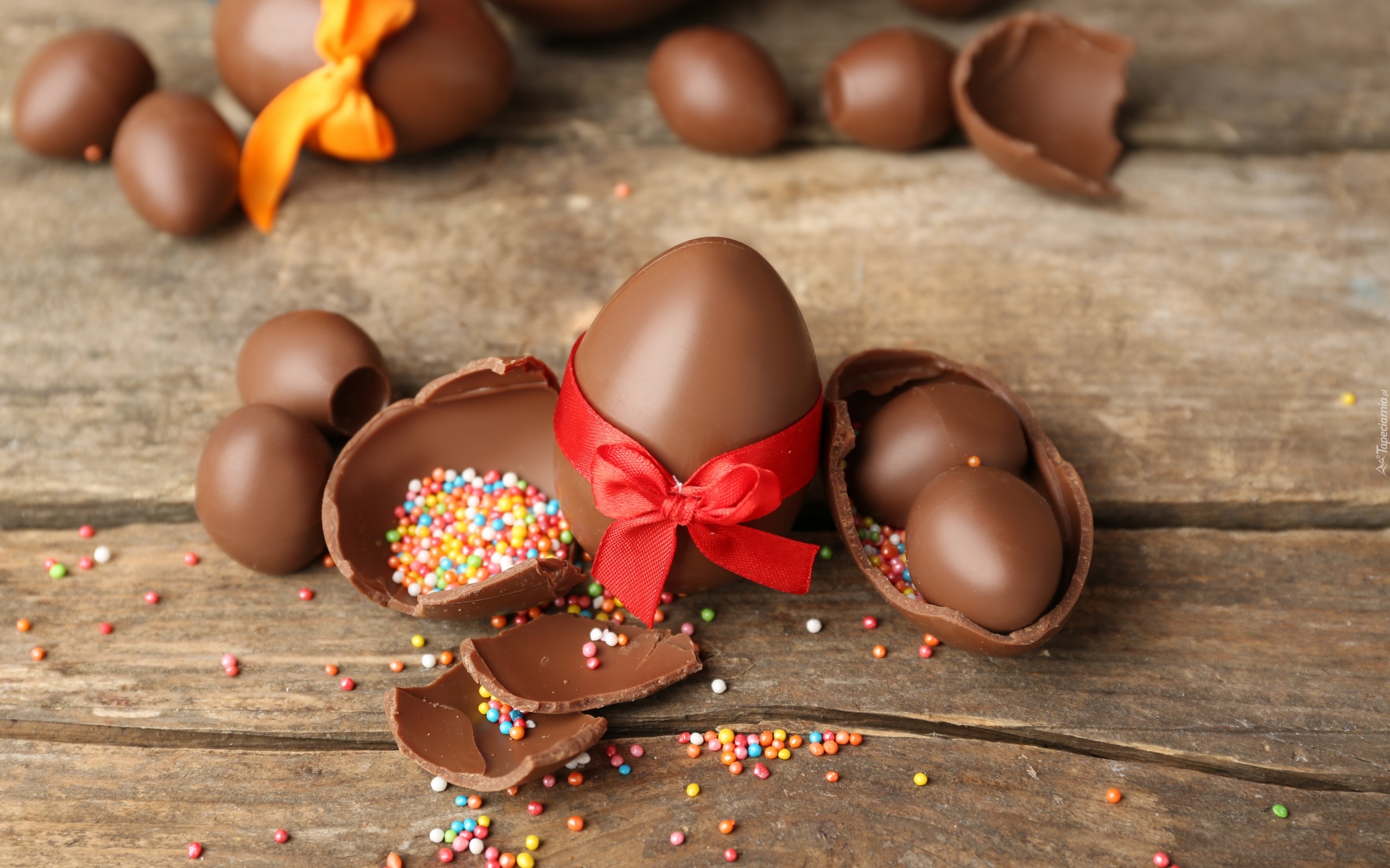 Edytor tapety: Czekoladowe jajka z kokardkami