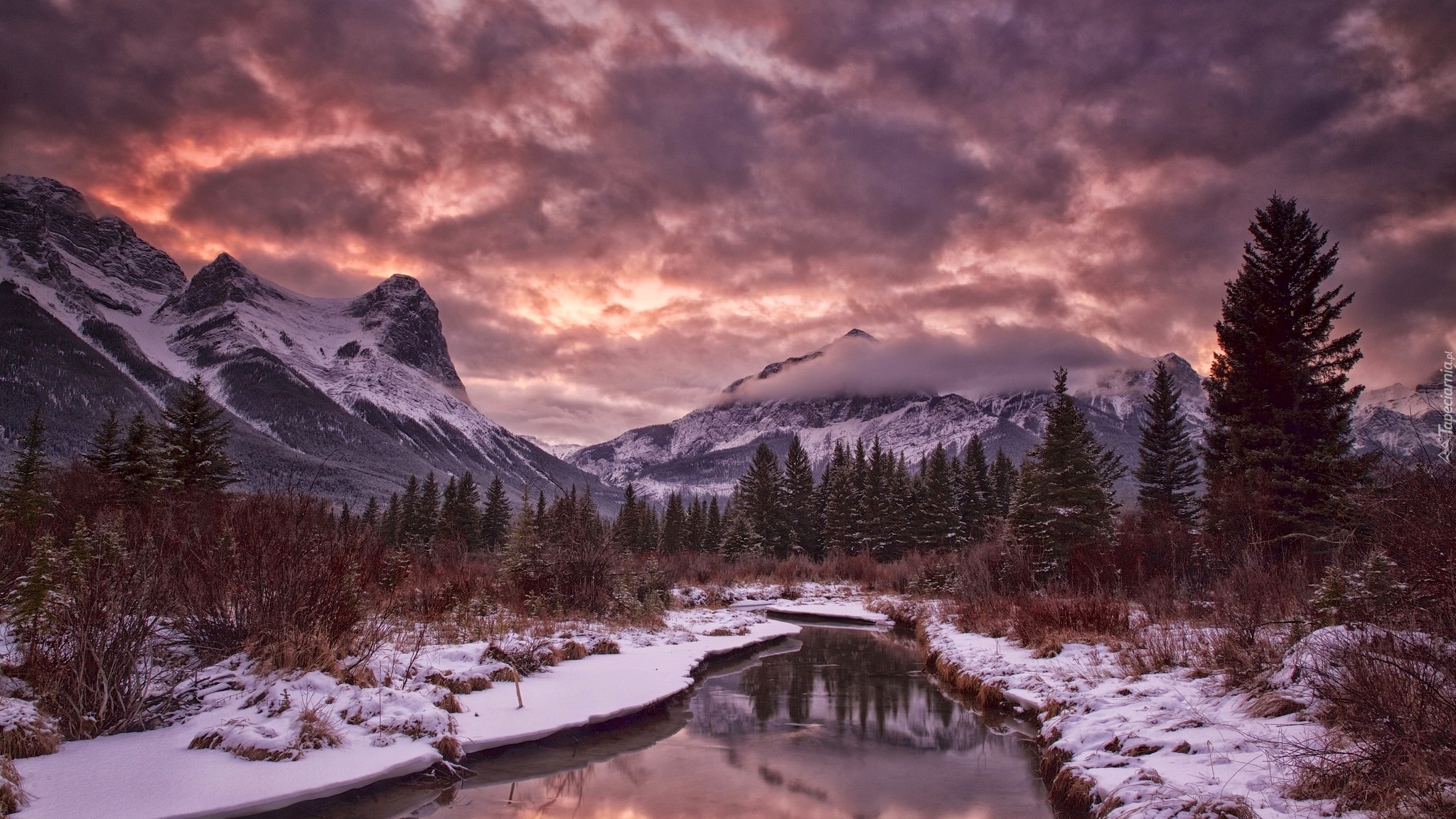 Edytor tapety: Zachód słońca nad Canmore w prowincji Alberta