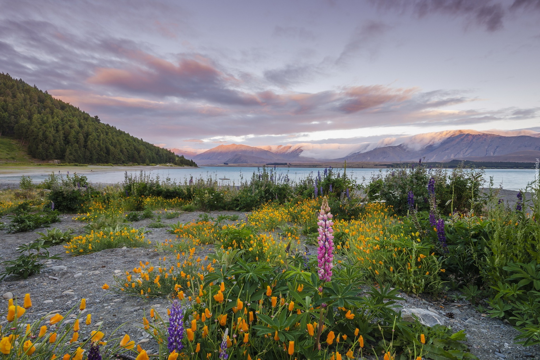 Edytor tapety: Brzeg jeziora Tekapo w Nowej Zelandii