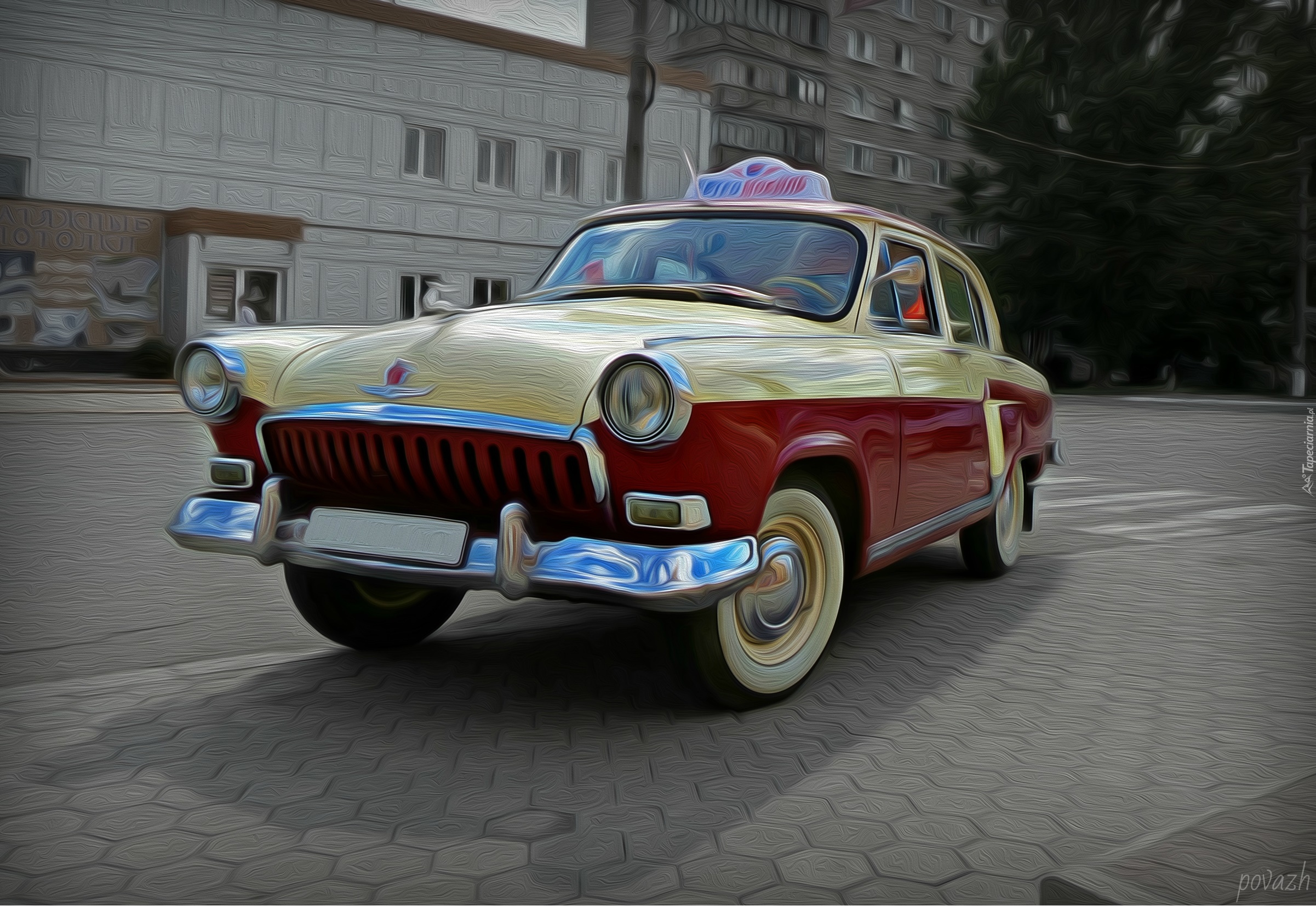 Edytor tapety: Zabytkowy samochód Wołga w grafice fractalius