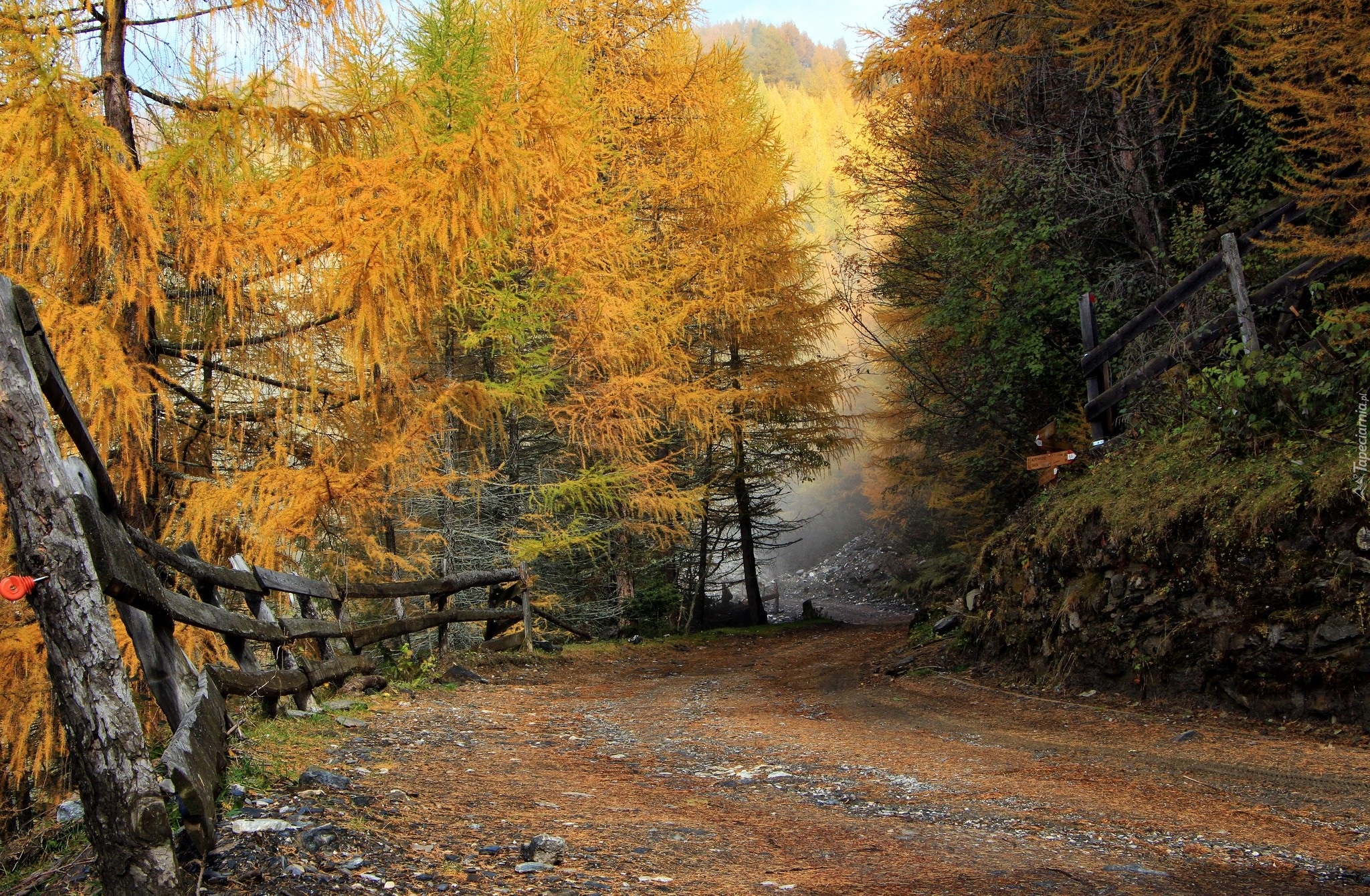 Edytor tapety: Ogrodzona droga wzdłuż jesiennych drzew