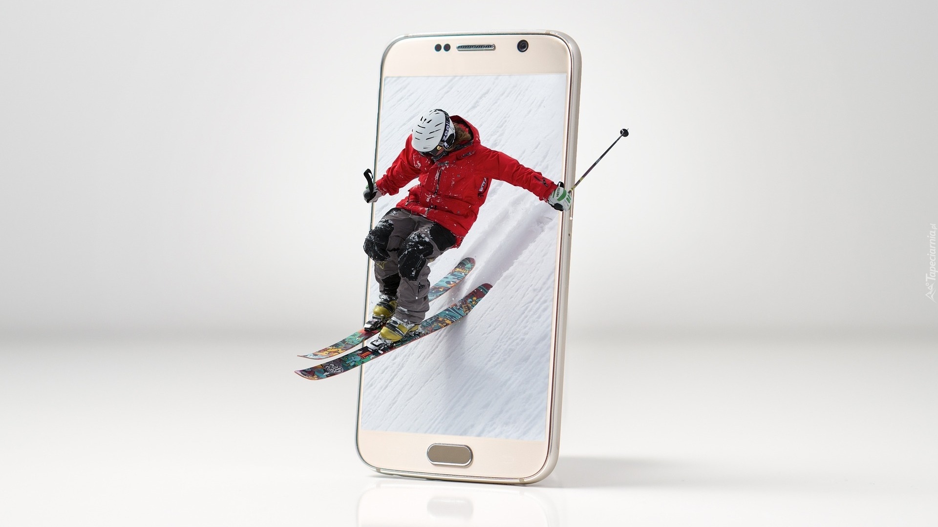 Edytor tapety: Narciarz i telefon w grafice 4D