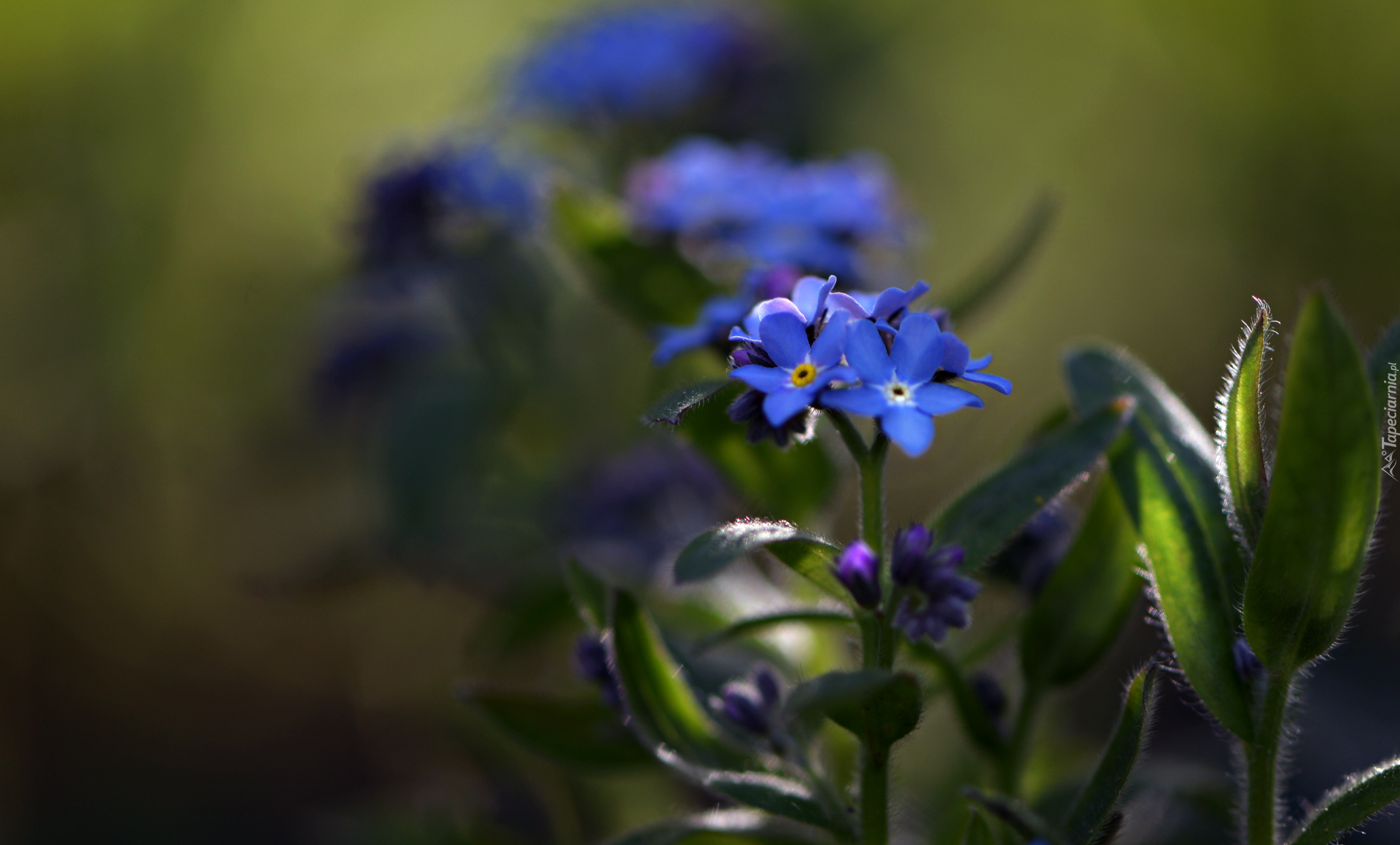 Edytor tapety: Niezapominajki na rozmytym tle