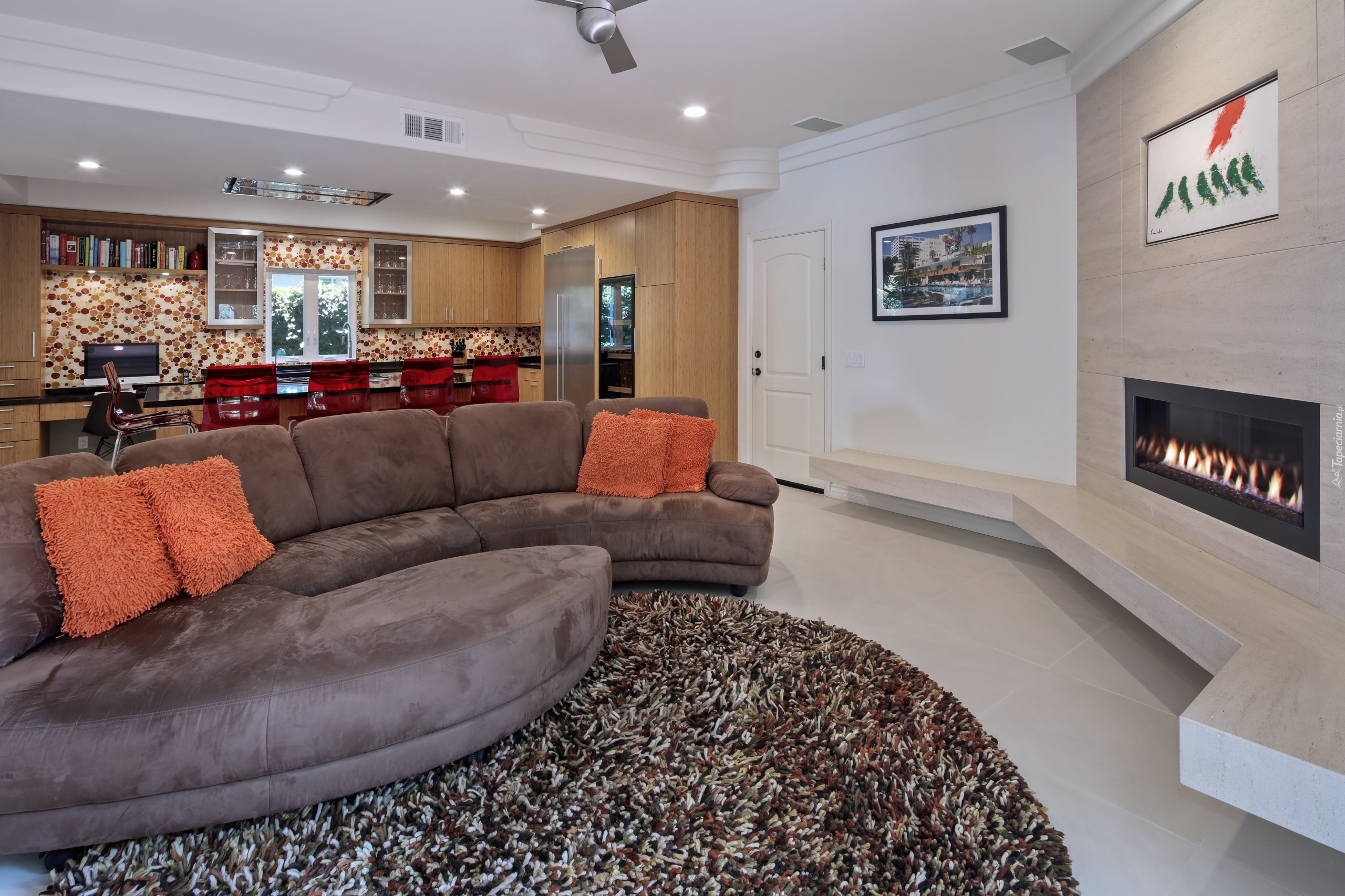 Edytor tapety: Umeblowany salon połączony z kuchnią i jadalnią
