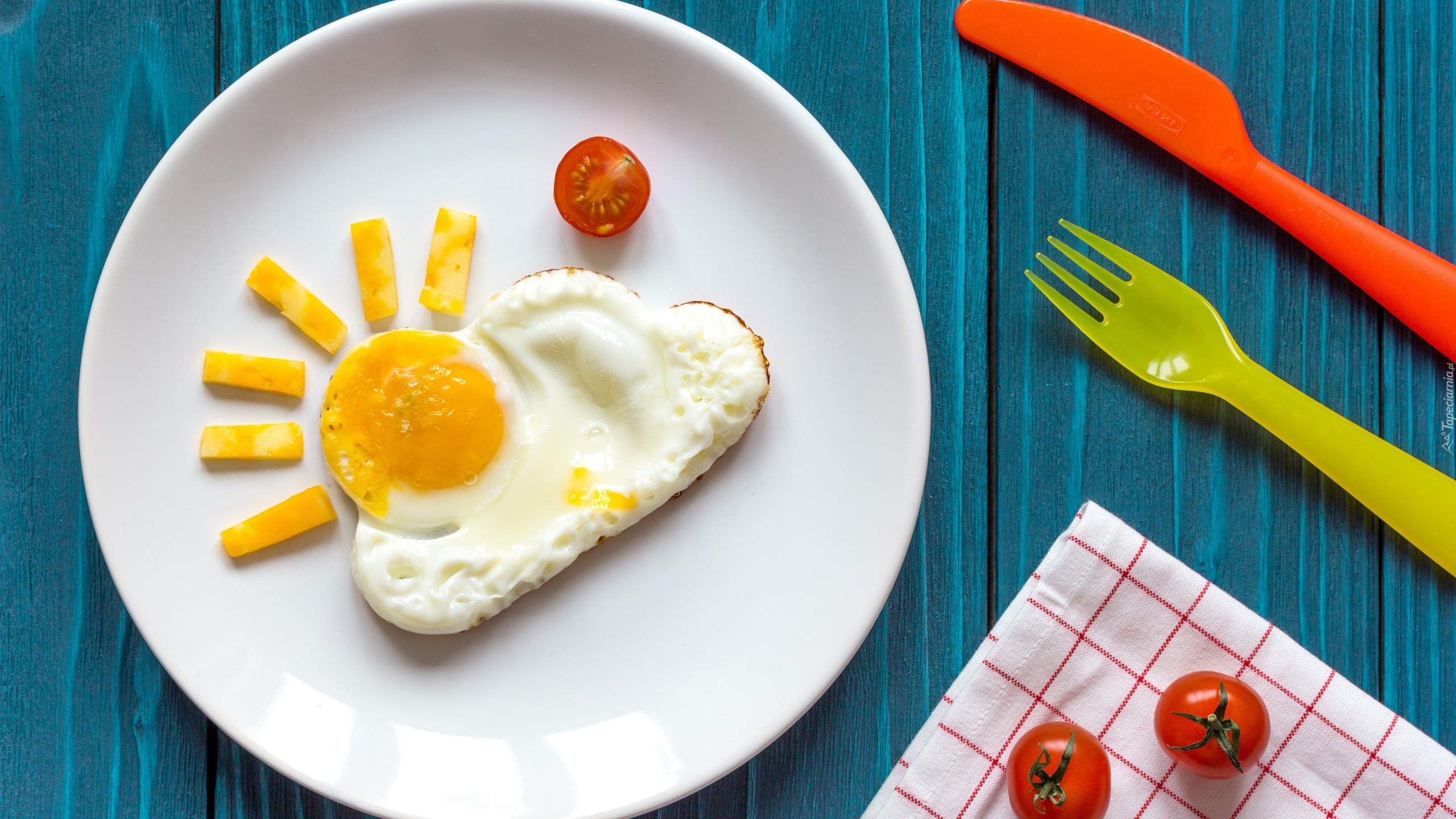 Edytor tapety: Jajko sadzone podane w kształcie słońca i chmurki